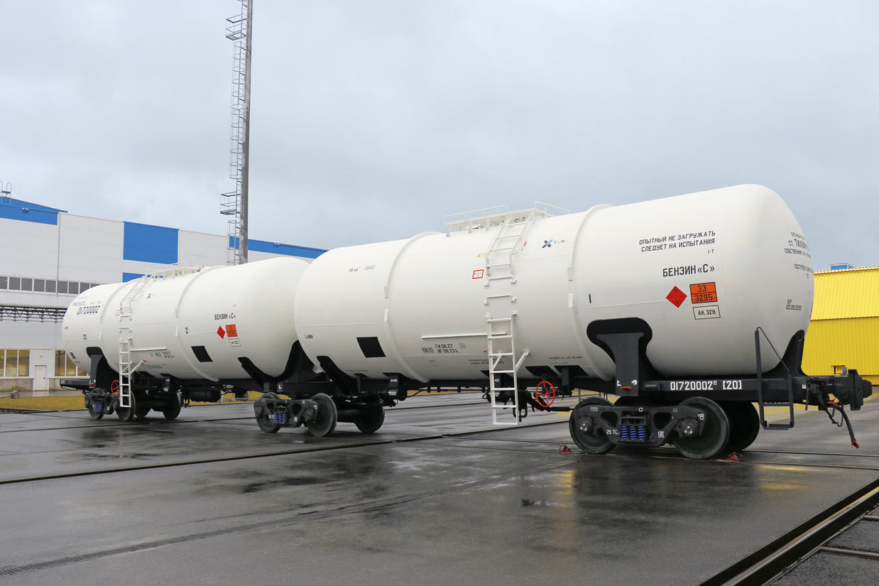 1) Модель 15-629. Шестиосная цистерна сочленённого типа грузоподъёмностью 108 тонн. Для перевозки нефтепродуктов