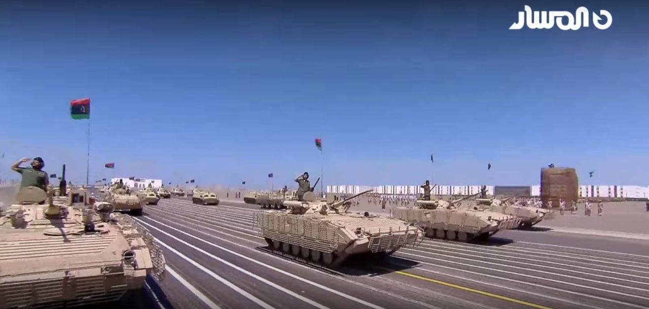 Парад в Ливии, посвящённый 11-й годовщине операции "Достоинство", во время которой Халифа Хафтар в 2014 освободил Бенгази.