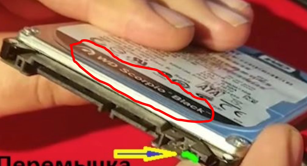 После долгого чтения/изучения инфы на форумах, случайно был найден ролик на ютубе (пикча с видео), в котором мастер устанавливает перемычку на шпильки HDD - тем самым переводит его в режим SATA_1, т.к. не все салазки и разъёмы DVD на ноутах поддерживают SATA_3.