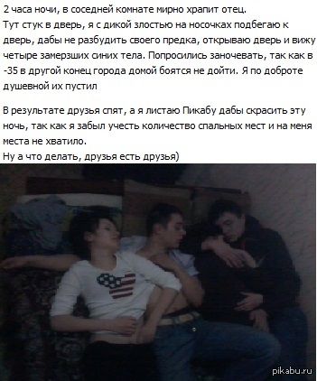 тяжело тебе наверно живется. Друзья тебе не друзья на самом деле, раз они улеглись спать, а о том где будешь спать ты не подумали. Такие друзья резко пропадают, как только ты перестаешь отвечать на их постоянные просьбы и нытьё. Хотя утверждать не буду, я никого из вас не знаю, но у меня обычно было так.