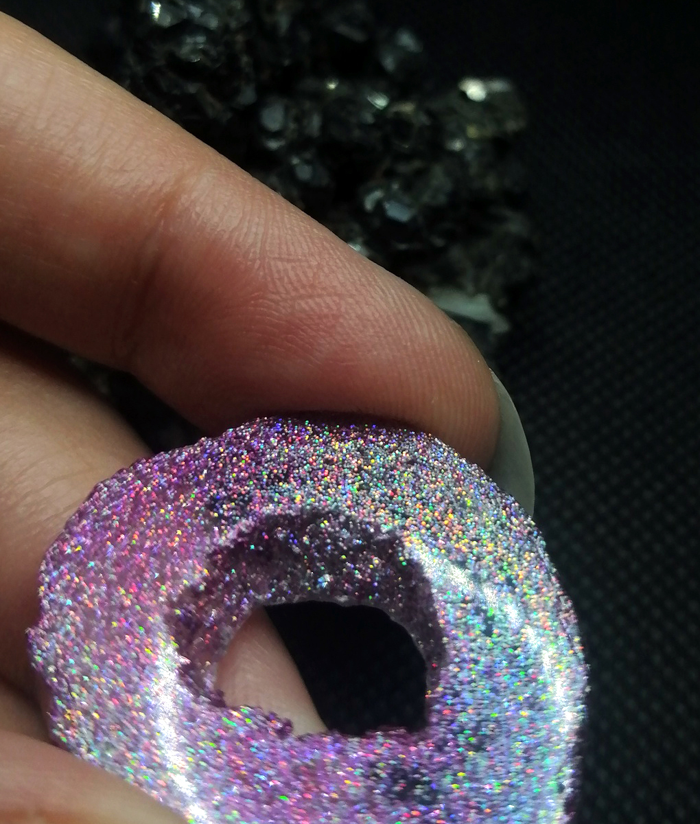 Покрытие очень стойкое, блестки не осыпаются, пальцем\ногтем не стираются