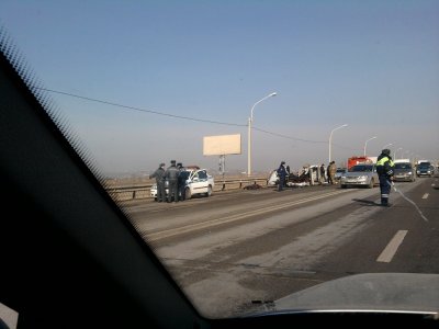 утром вроде "пятёрка" выскочила на встречку и попала в лоб тойоте