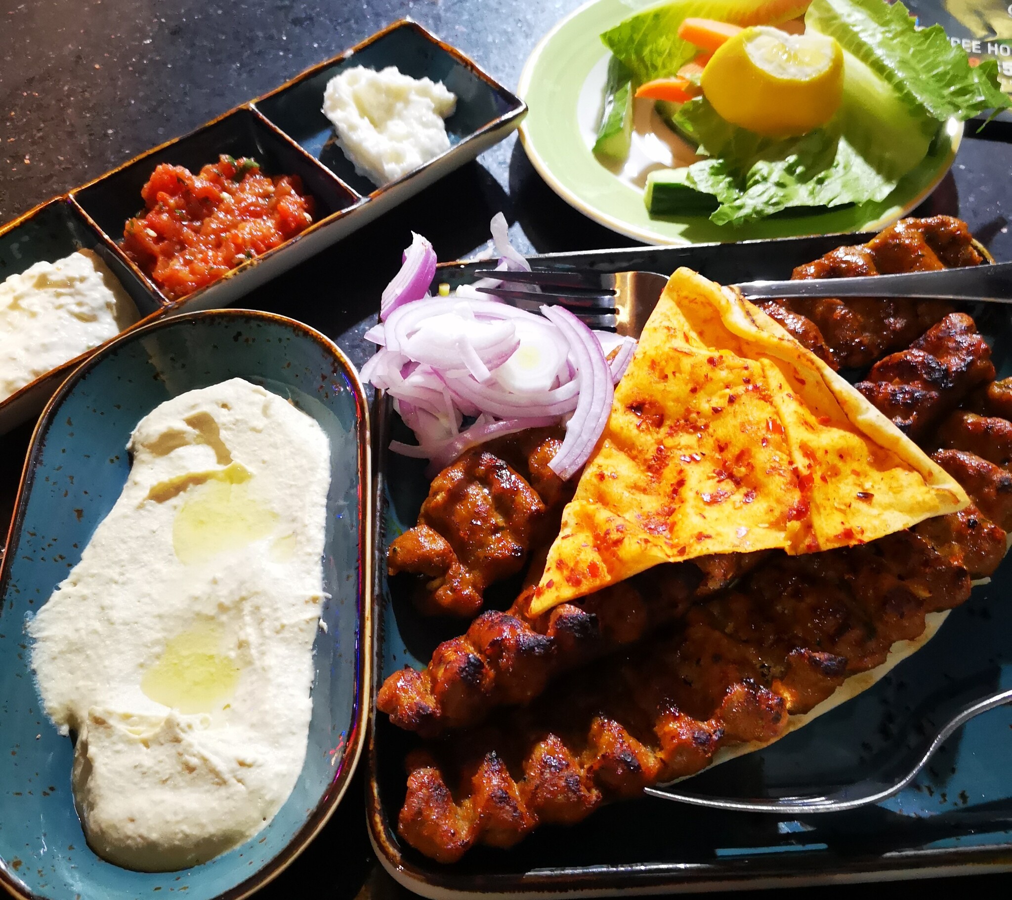 Порции везде гигантские. Я в первый ужин взял шашлык и масалу в кафешке. Шашлыка принесли с полтазика. С него уже обожрался. Масалу пришлось просто понадкусывать мясо, чтобы врагу не досталось. Так что одного любого блюда обычно более чем достаточно. Это не какая-нить наша сраная «рыба моя», где после первого, второго, третьего и компота хочется пойти и догнаться шаурмой, ибо не наелся за дохуя денег. Вот например как выглядит просто, если заказал люля. Обязательно накидают еще зелени, овощей, вкусных лепешек, хумуса и намазок. Все включено. Я хз зачем им такие порции. Только если сидят на 2 разовом питании - едят 2 раза в неделю. Если хотите покончить с собой углеводами, то можно сходить в чизкейк фактори за тортиком. Это будет сладкая смерть.