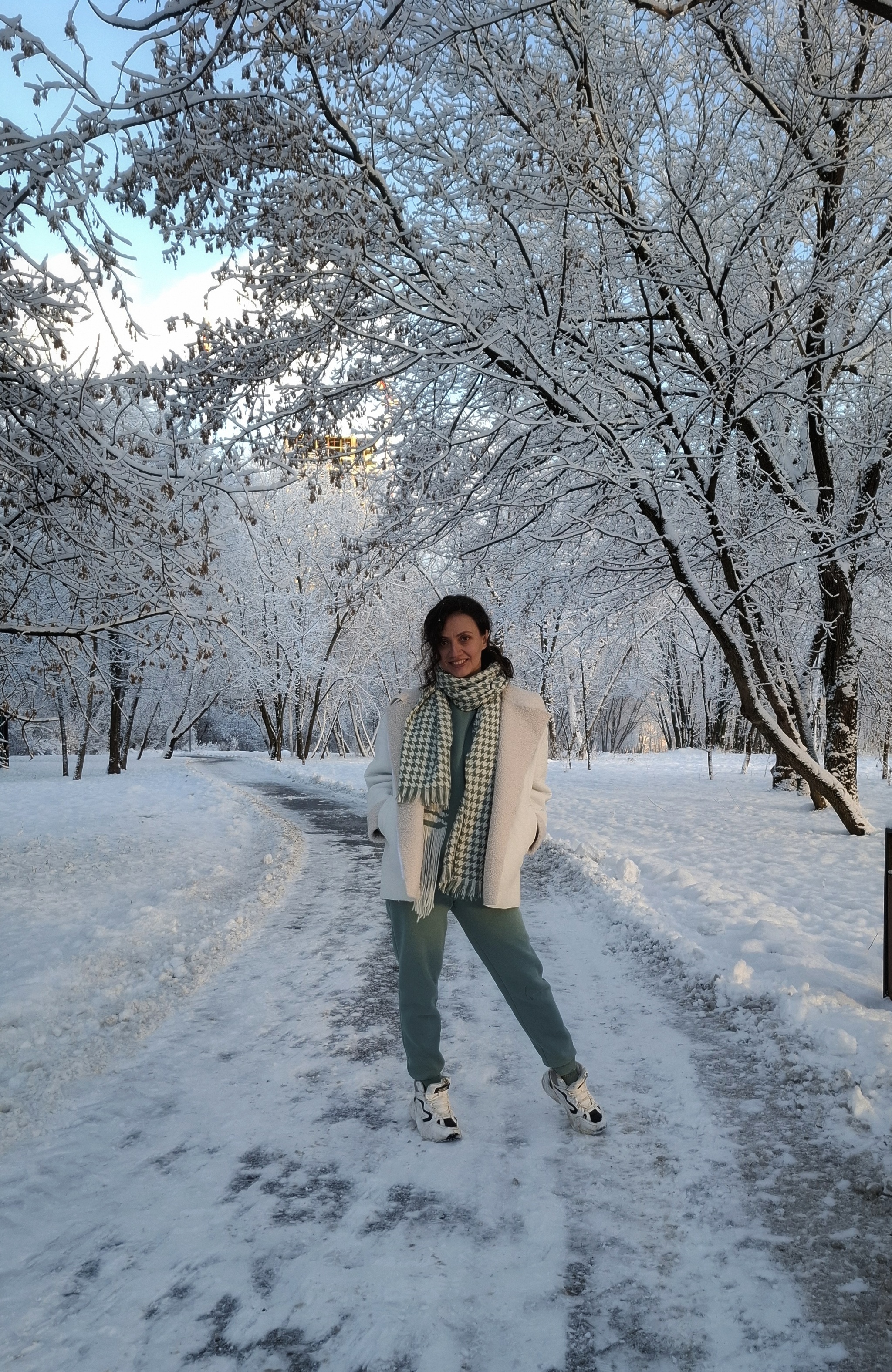 Костюмы из начеса 2 год ношу. У меня их много, но эти затаскала, т.к они идеально по цвету подходят к сшитому мной пуховику. Добавила к ним аннору в цвете экрю, и они составили мой прогулочный гардероб на зиму.