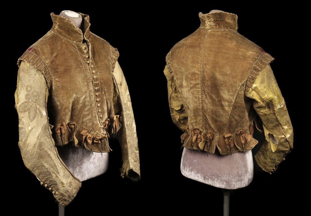 Этот дублет сшит из красного бархата (ныне побуревшего) и шёлковой парчи, которая использовалась для рукавов. Несколько шёлковых бантов прикреплены к отверстиям для шнуровки внутри поясных хлястиков. Согласно моде первой половины XVII века, передняя часть дублета была застёгнута ниже груди, что обеспечивало очень плотное облегание на животе.