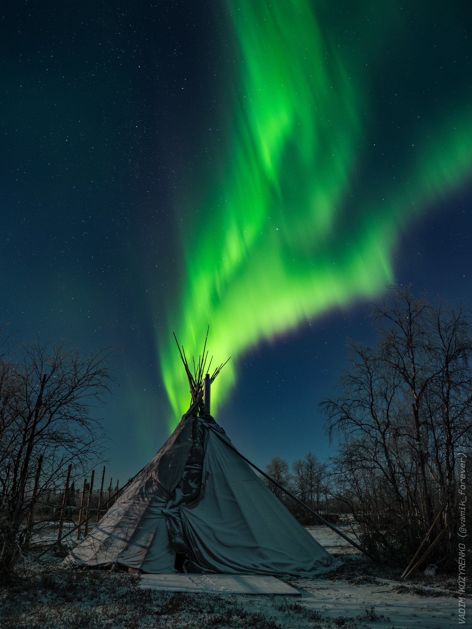 В эту ночь Дух Севера бродил по своим владениям. Он являлся не в облике грозного исполина, а как зыбкий свет, струящийся над снегами, как шёпот метели в ветвях карликовых берёз. Его присутствие угадывалось в танце огней над головой, в хрустальном звоне морозного воздуха, в таинственных тенях, скользящих по свежему снегу