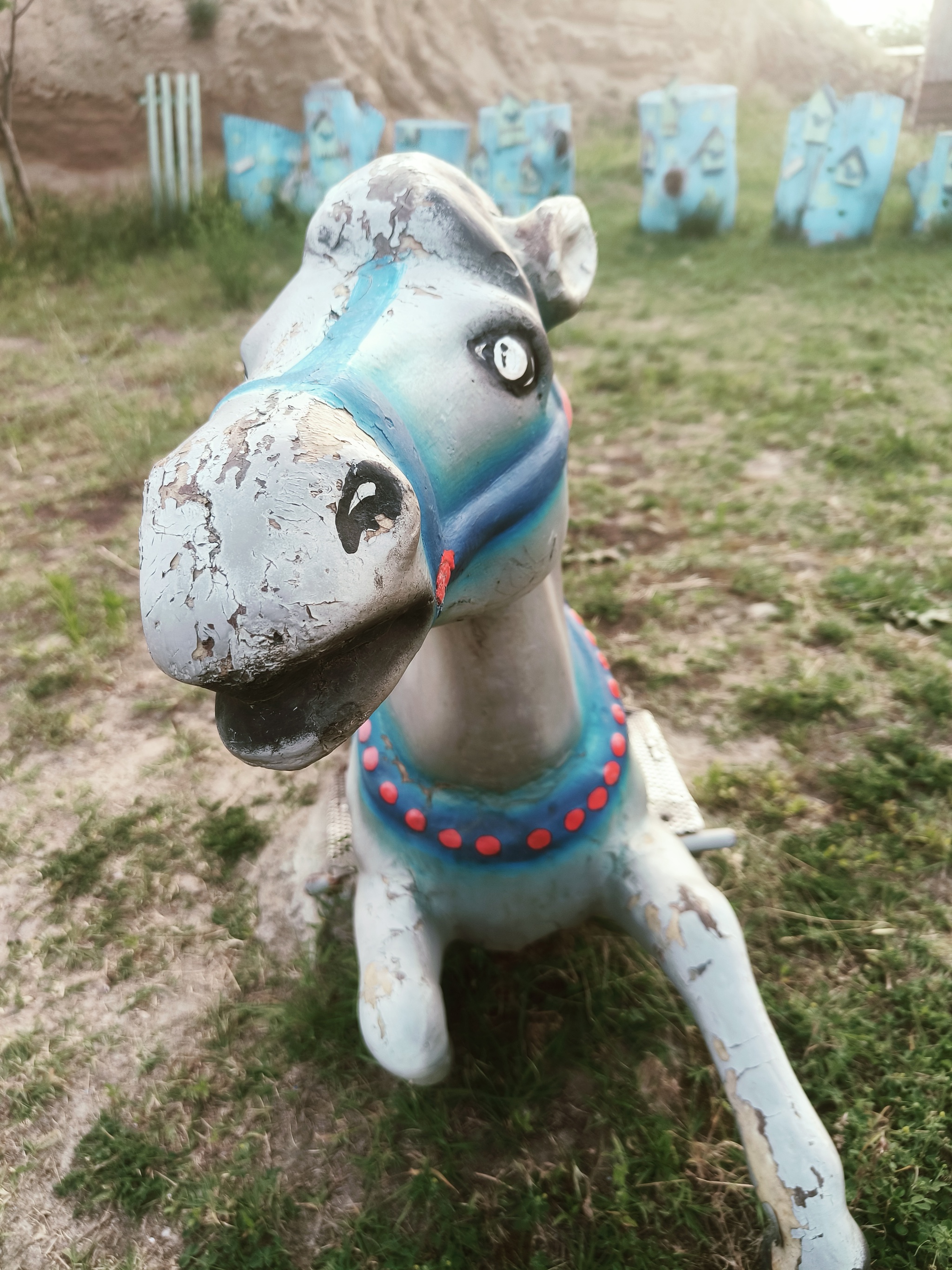 Заброшенная детская площадка на базе отдыха. При этом база вполне себе функционирует, там много отдыхающих.