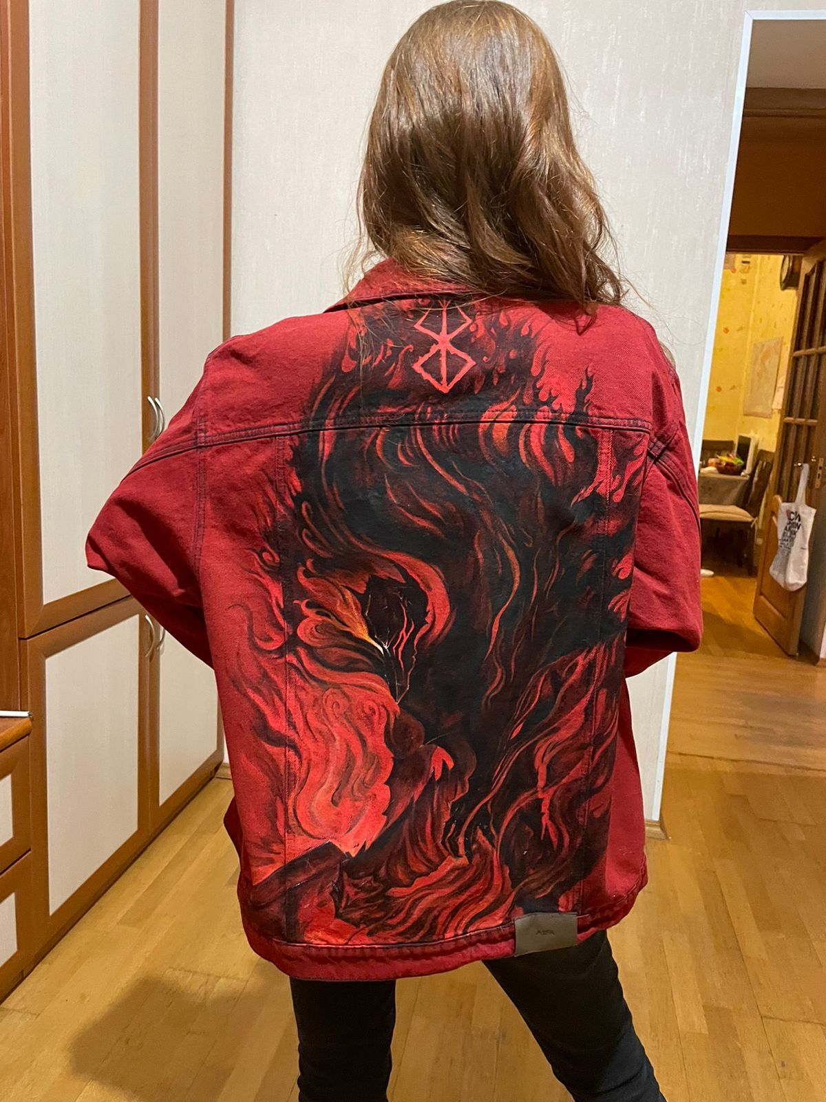 На удивление, это оказалось довольно просто, пару кистей, акриловых красок и маркеров по темной ткани с Леонардо, ну и около 5 часов своей бренной жизни конвертировались в на мой взгляд довольно крутую кастомную джинсовку.