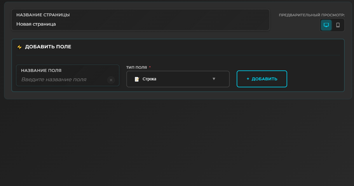 Тут всё просто: пишите в “Название поля” нужное название, выбираете тип, клик по кнопке, и вот поле уже на странице. Если есть необходимость добавить доп. поле под основное или вы что-то сделали не так, то кликаем туда же, и у вас появляется раздел с параметрами поля (для разных полей этот раздел отличается, а у полей типа «Число» так вообще есть раздел “Формулы”, где творится всякая магия)