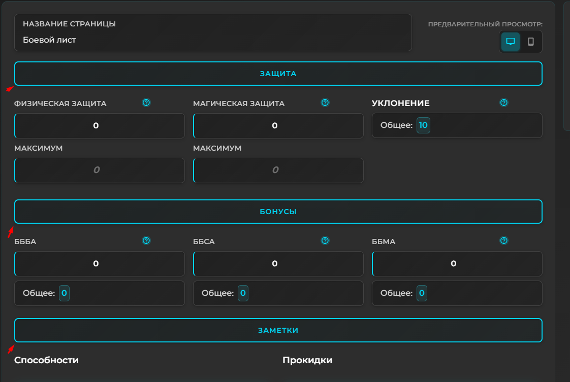 7) Формулы игрока - Добавьте в свою систему, и пусть игроки сами развлекаются с составлением формул и автоматизацией своего листа, предпочтительно использовать, если в пати есть Фанаты Эксель табличек (категорически требует редизайна, мы уже занимаемся этим)