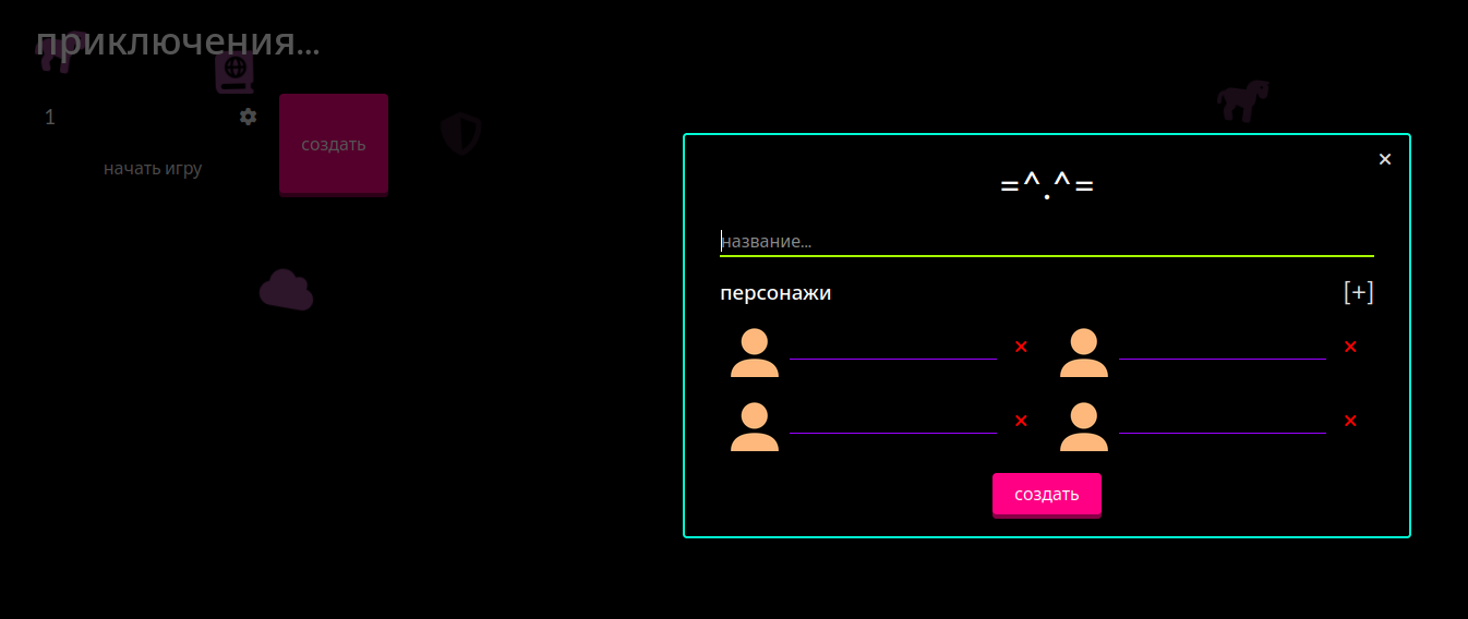 пользоваться довольно просто, после входа надо нажать создать, назвать саму игру и игровых персонажей, на [+] можно добавить больше, если 4х персонажей мало, а нажав на иконку персонажа можно загрузить картинку: