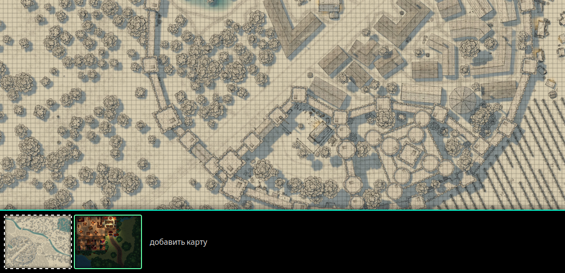снизу же можно добавлять карты местности и переключаться между ними, если игроки не были на той карте, куда переключился мастер подземелий, сверху выскочит сообщение-запрос переместить ли игроков на эту карту (минус, большие карты не очень хорошо отображаются и я не нашёл параметр, который бы за это отвечал к сожалению)