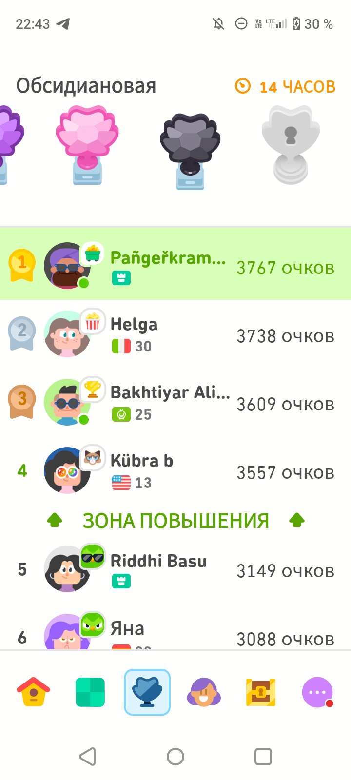 Фото, где я за 4 дня достиг первого места ОБСИДИАНОВОЙ лиги (а она, на секундочку, вторая после алмазной, лучшей в приложении). И Я СМОГ это сделать, несмотря на обычную школу, занятия в музыкальной школе и другие некоторые факторы. Без них я бы остался, наверное, в изумрудной или около того.