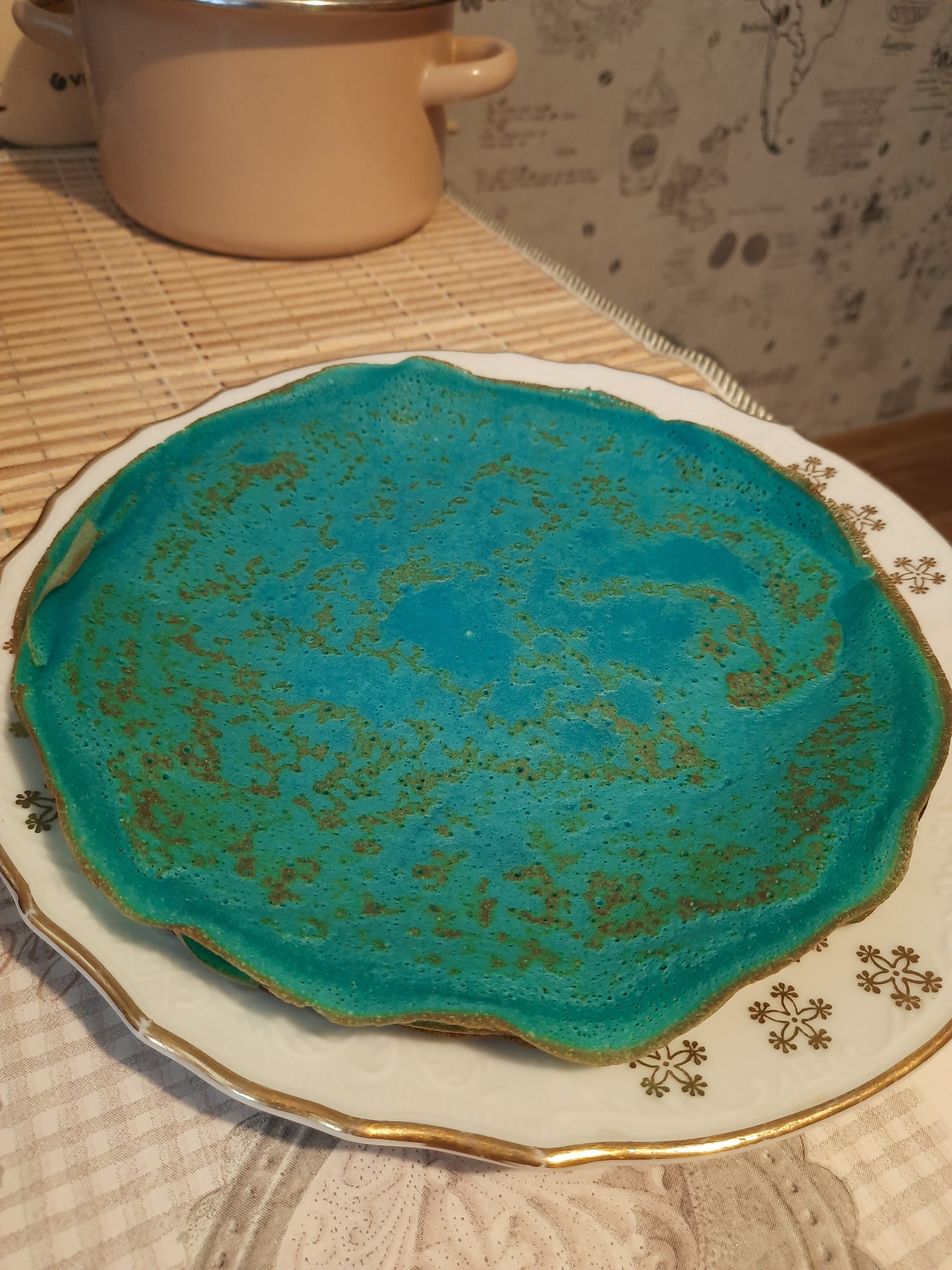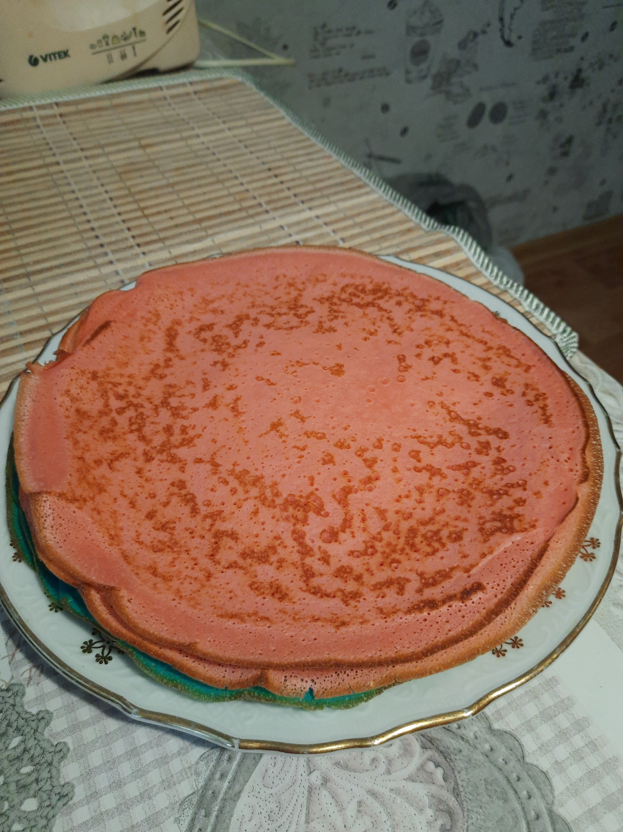 Давно хотел попробовать, что оно такое - пищевой краситель. Ну и вчера пока с супругой ждали старшего с курсов, заехали в Метро. Магазин такой. Там я и увидел эту хрень. Сегодня думал не долго куда его залить. Условие было одно - сделать быстро. Ну а что можно сделать быстрее чем блины.