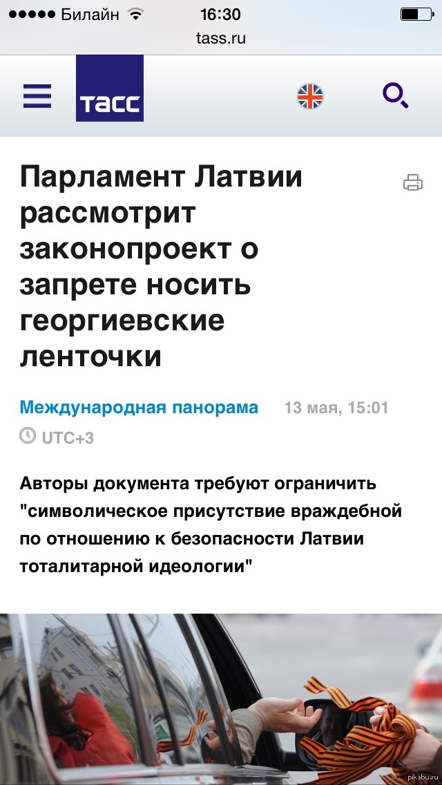 9 Threeonezero8 Дурной пример заразителен.. 10 лет назад http://tass.ru/mezhdunarodnaya-panorama/1965749 Политика Латвия Георгиевская ленточка Маразм