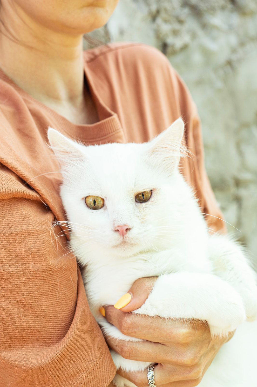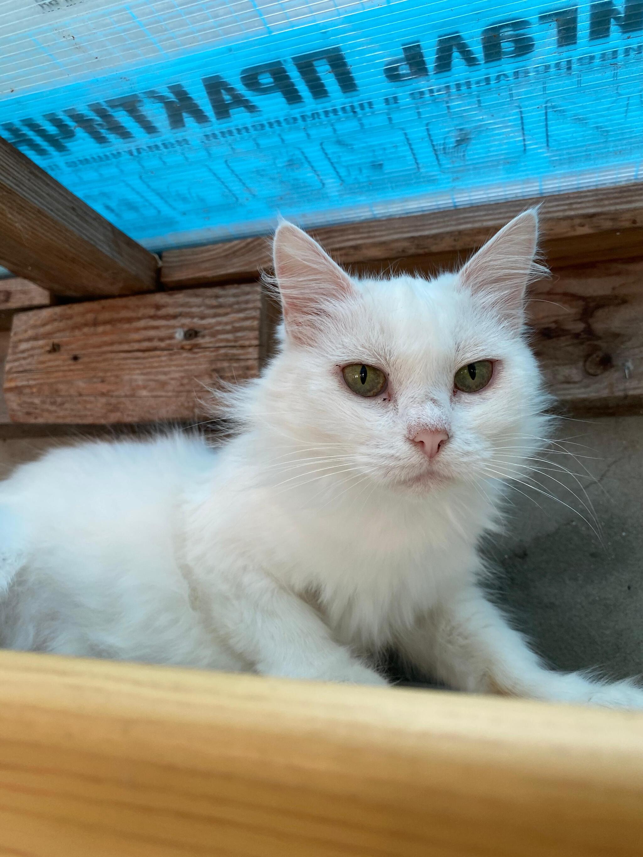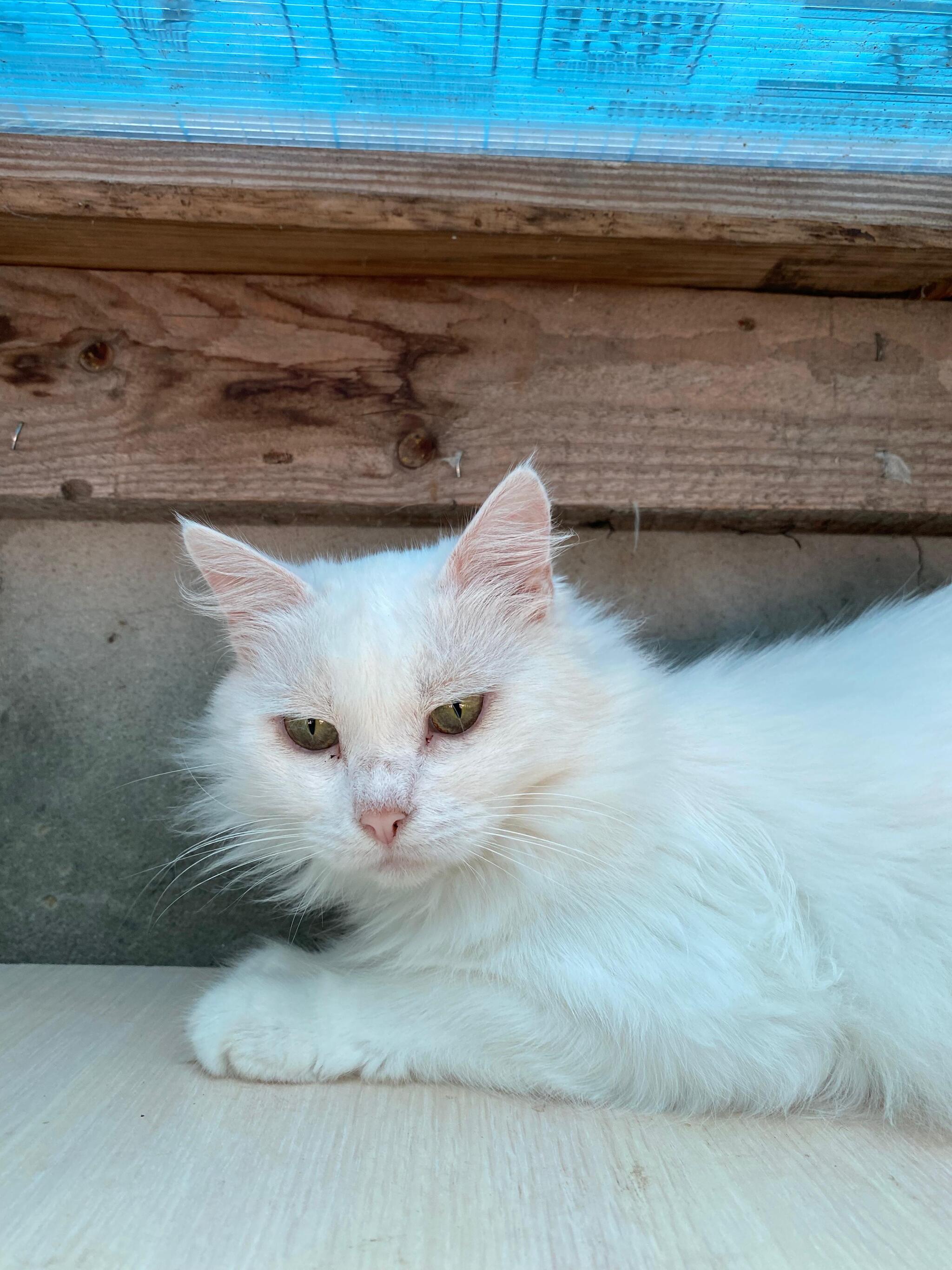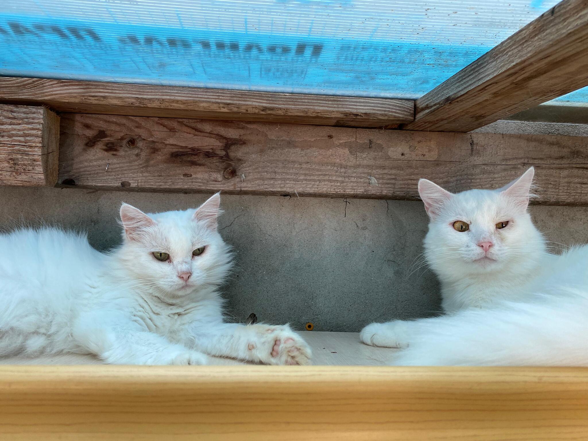 Короче такое дело, всю зиму ездили на дачу и возле пятерочки в поселке постоянно видели двух беляшей, кошка и кот, грязные, замёрзшие, коты дежурили на входе, иногда их кормили. Мы стали из каждый раз подкармливать. Коты замучанные какие-то, у одного больной глаз.