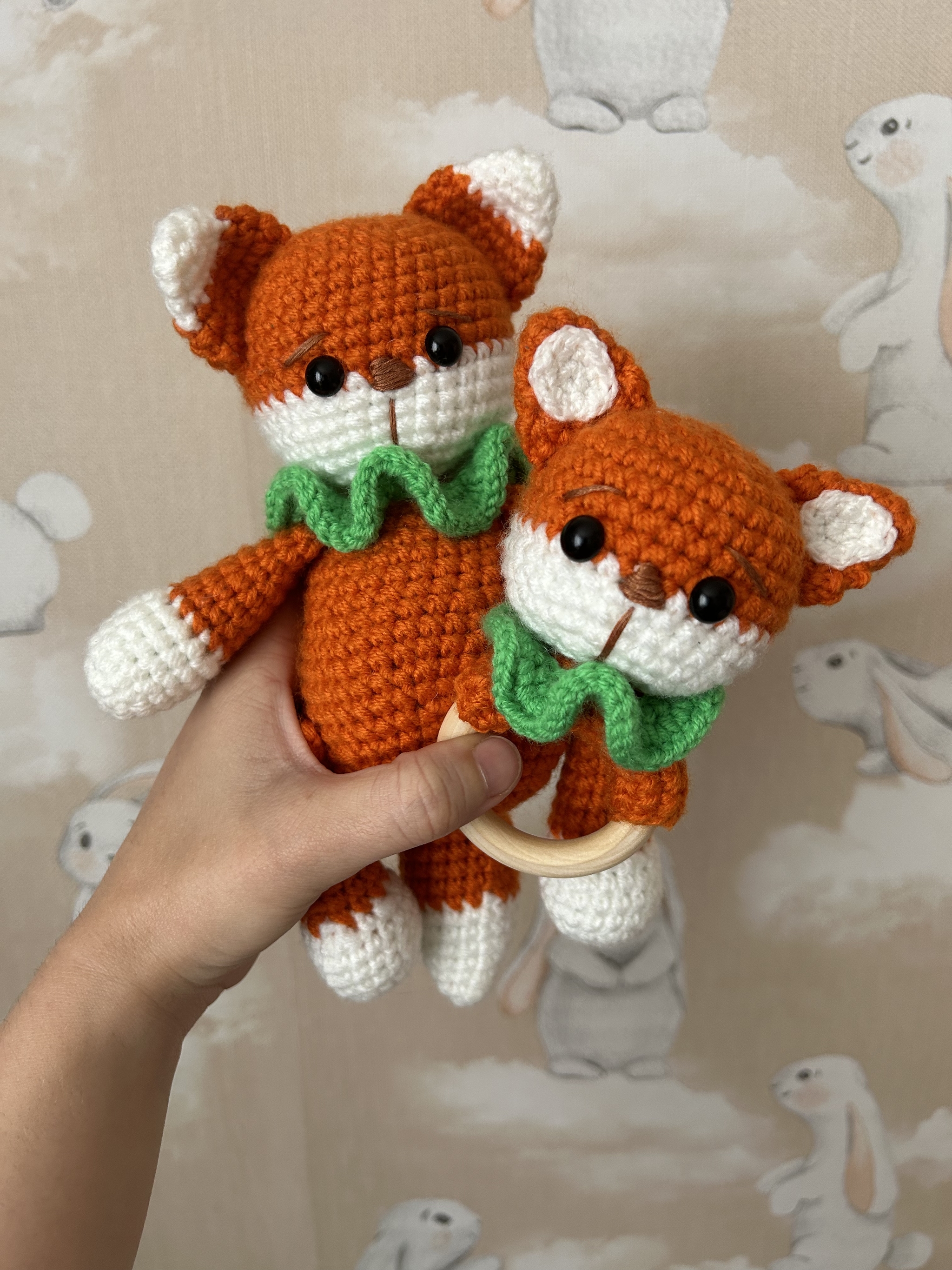 Подарочный набор для малыша. Игрушка: -15 см -глазки на безопасном креплении -внутри холлофайбер Погремушка-грызунок: -колечко из бука -внутри шарик-гремелка и холлофайбер -мордочка вышита