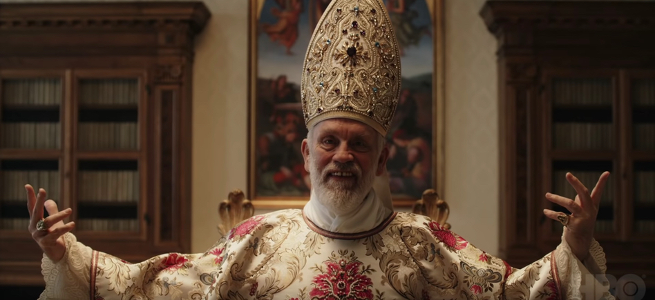 Слева - актер джонатан Прайс (чувак из "Бразилии", папаша Элизабет Суон из "Пиратов Карибского моря" и просто его Воробейшество из "Игры Престолов"), а справа сам Папа Франциск
