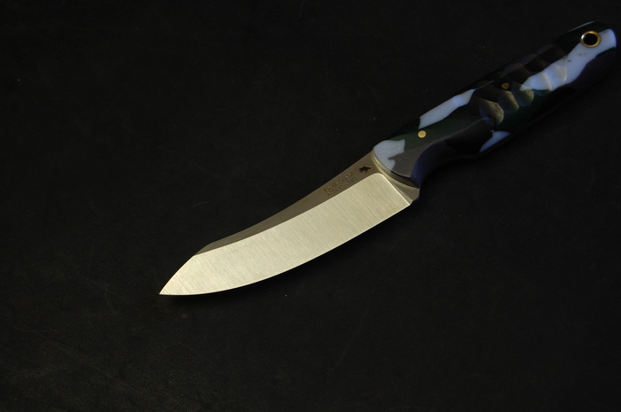 Сталь AUS10co 3 мм толщиной. Конструкция фултанг. Самодельная микарта на рукоятях.