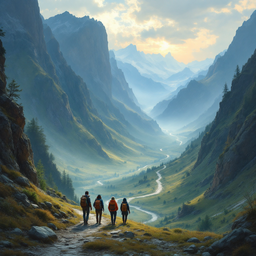 Однажды две группы путешественников отправились в дальний путь через горы. Первая группа выбрала легкий маршрут - широкую долину с ровной дорогой. Вторая решила идти через перевал, где путь был труден и опасен.