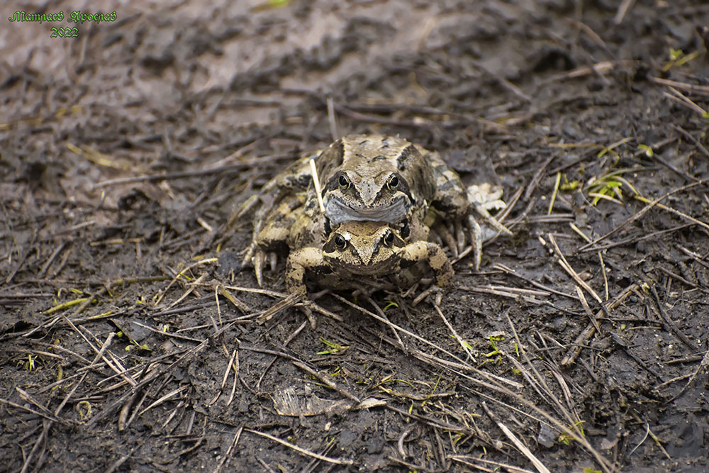 Но в самом начале пути увидели трогательную сцену. Одна лягушка очень устала. А вторая решила ей помочь дойти домой.