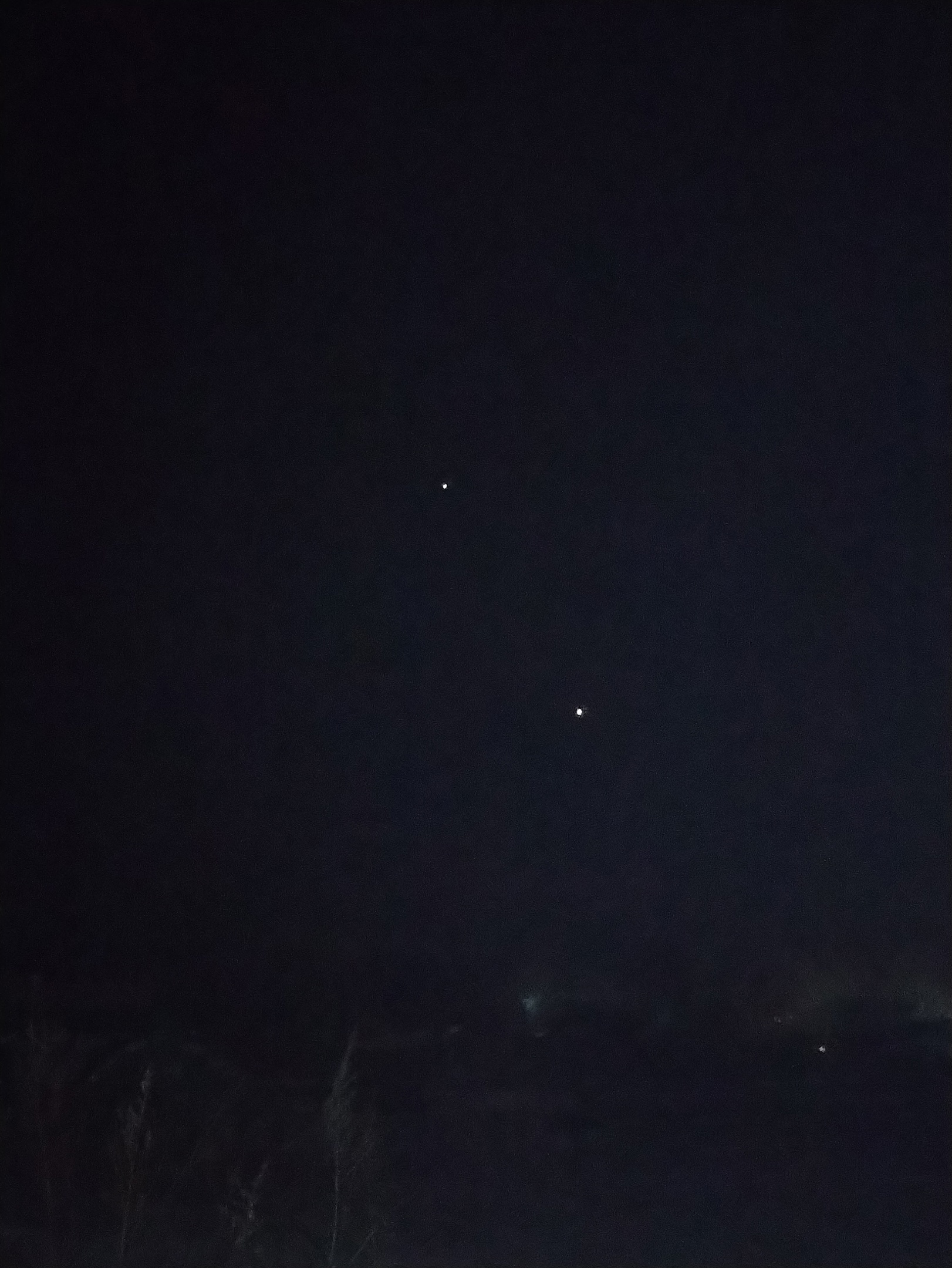 Живу в Сибири, рядом с Новокузнецком. Звёздное небо здесь довольно скудное, а те звёзды, которые видны, довольно бледны, а с плохим зрением небо вовсе чёрное. Однако сейчас в 8 часов вечера я вышел на улицу и обомлел: на небе, где-то на западе или юго-западе, вдруг появились две очень яркие звезды, настолько яркие, что даже камера телефона их без труда запечатлела.