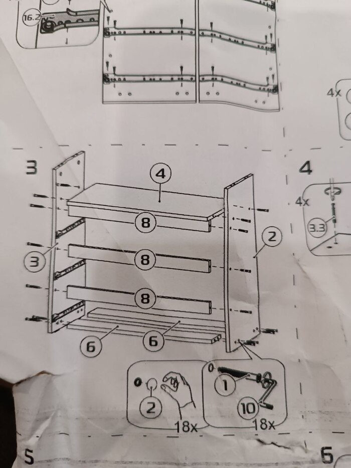 Вот мне пришел комод на днях. Смотрите какая мощная инструкция (это я еще расправил ее):