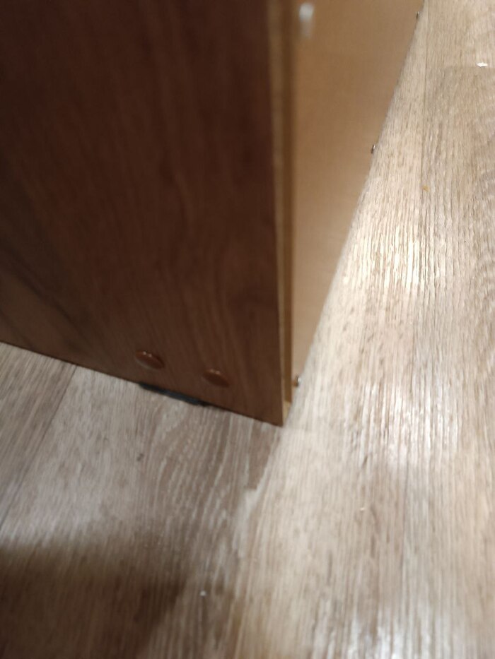 И наконец углы, примыкающие к стене. По вашей же инструкции, комод вверху надо притянуть к стене, но внизу он вплотную не встанет из-за плинтуса, а вырез под плинтус сделать никто не подумал: