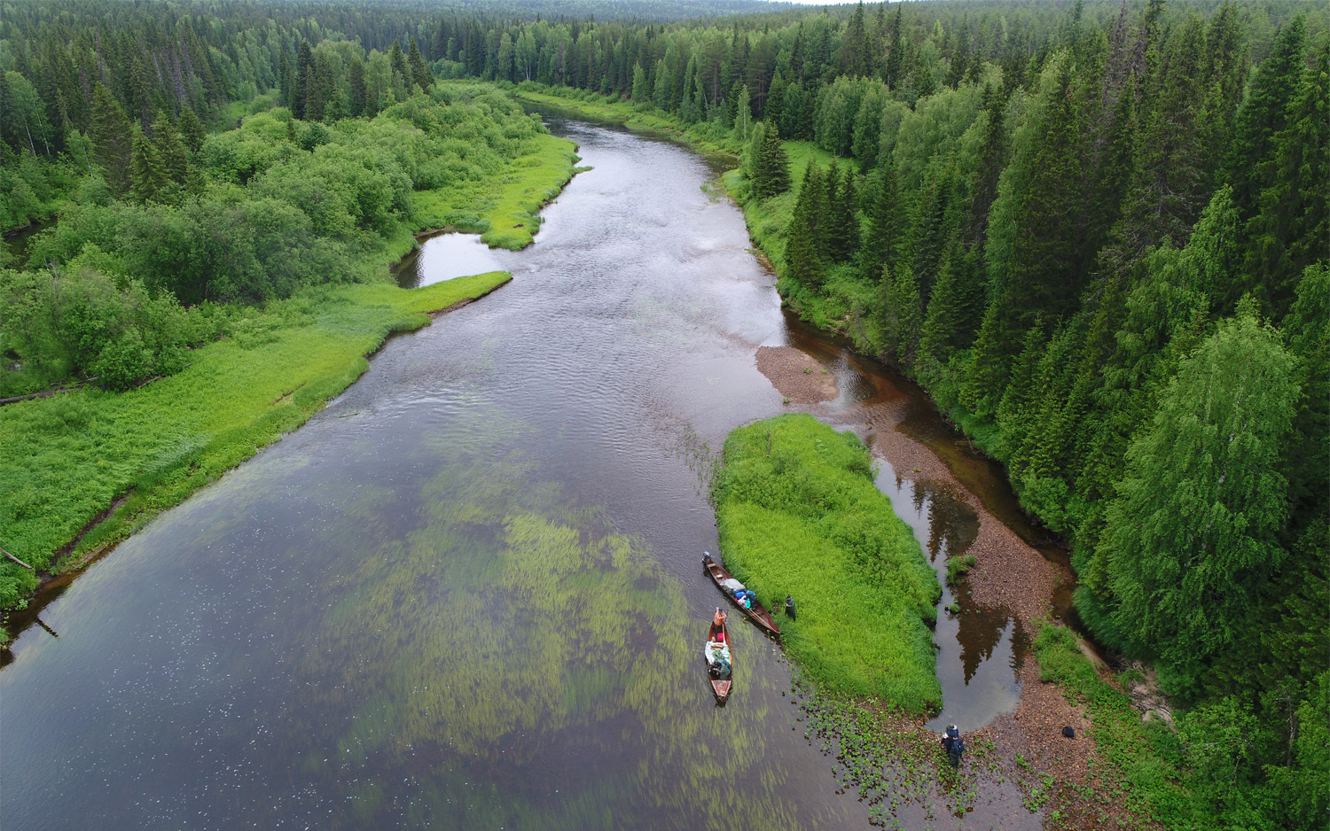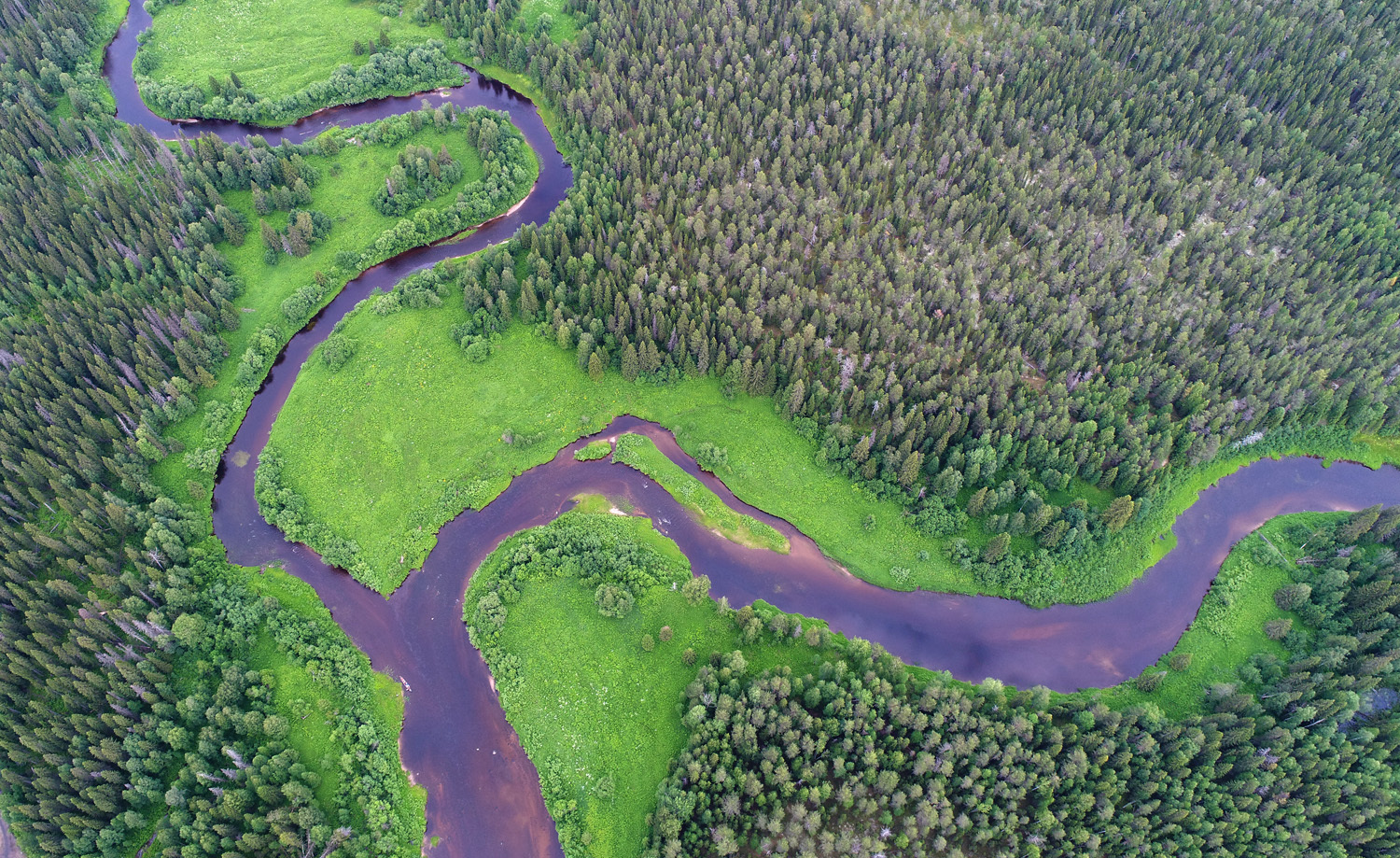 Излучина реки Юла с высоты птичьего полета. Реликтовые еловые леса простираются на десятки километров. Это средняя часть будущего заказника.