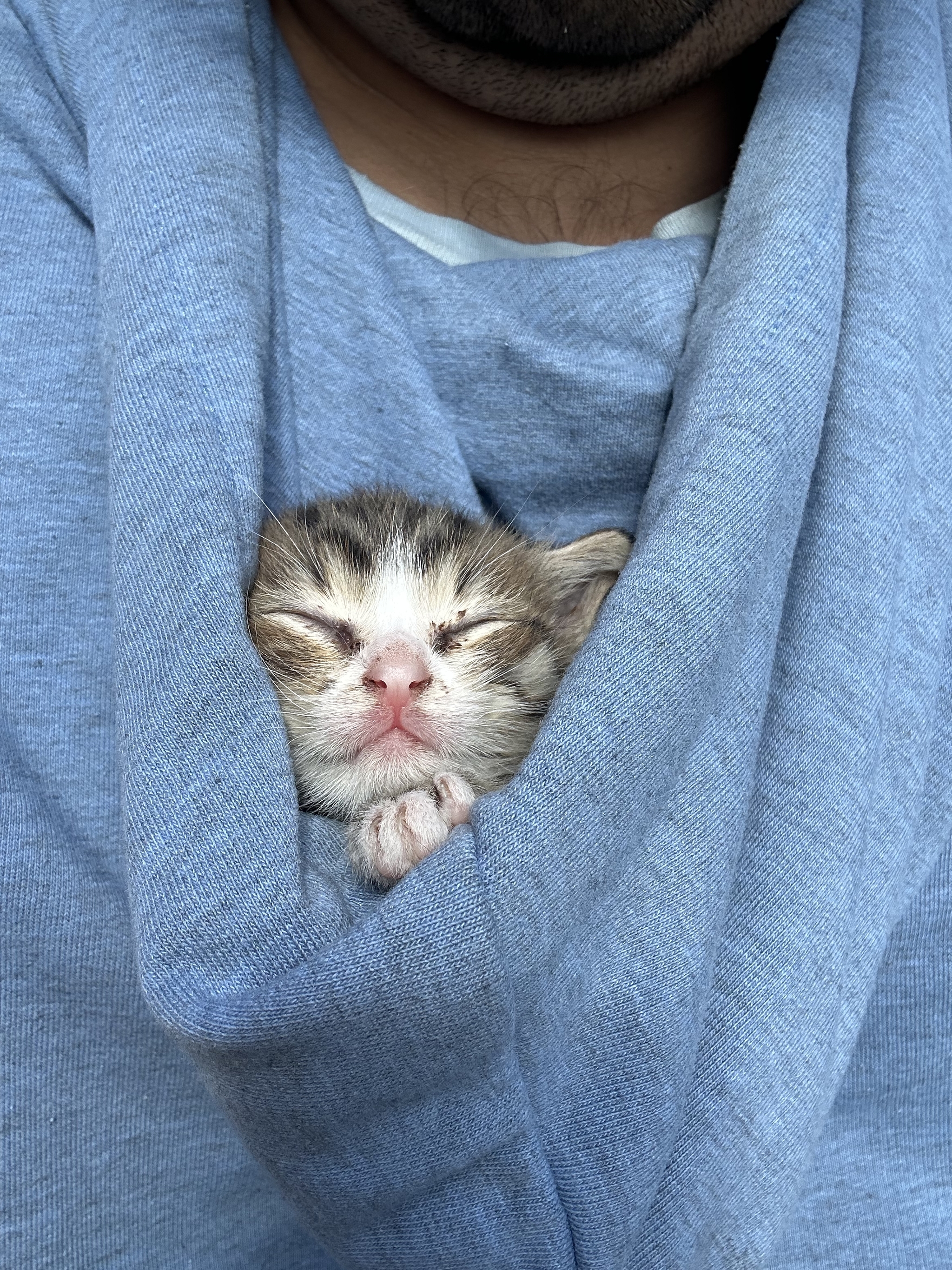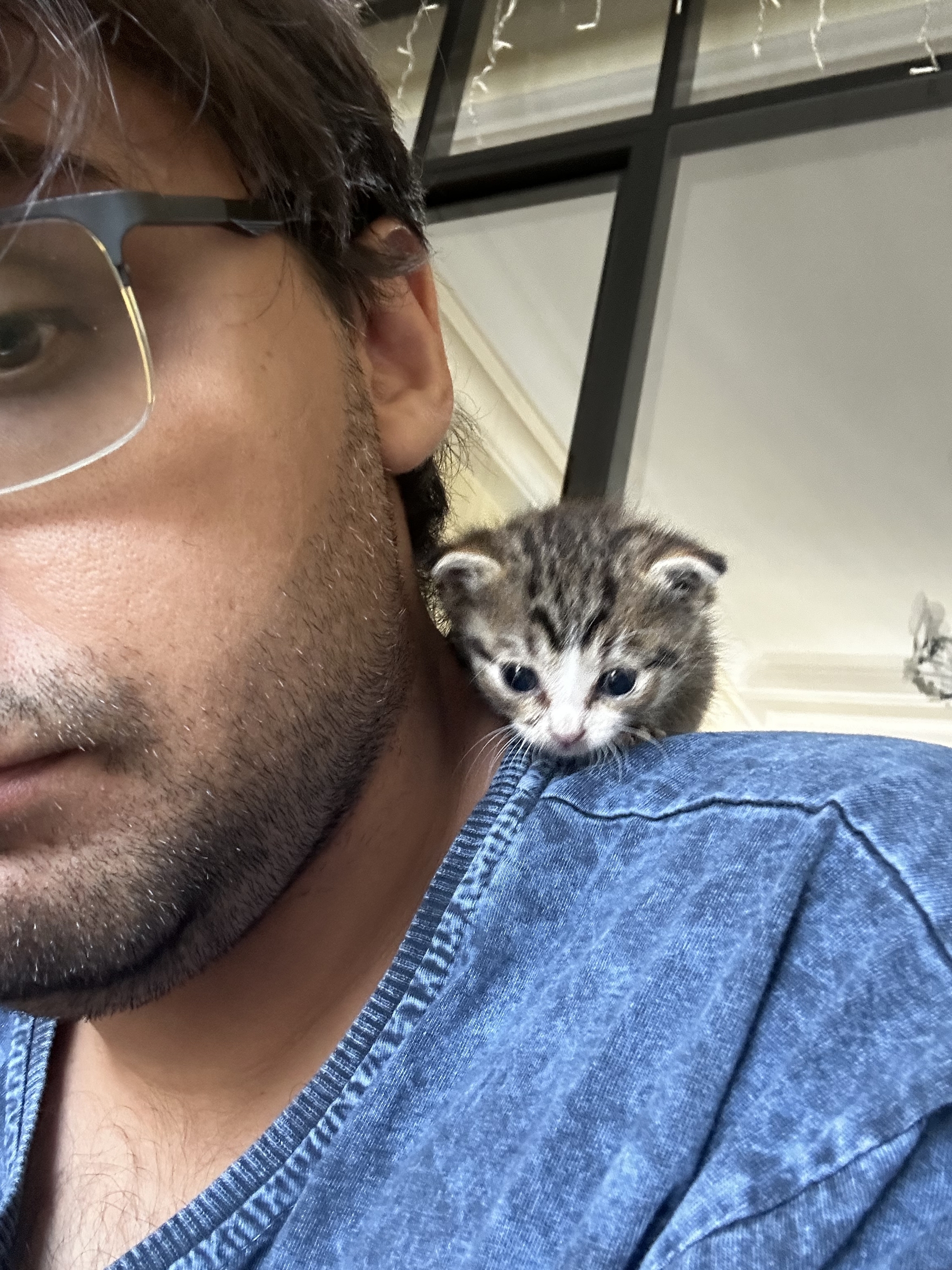 Через два года местный кот (со своей будкой с подогревом у соседей, но гуляющий сам по себе) привел почти что за лапу к нам другого котенка и оставил. Тоже взяли))