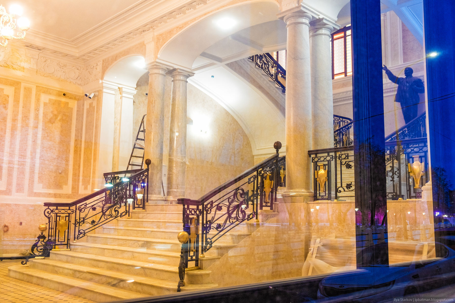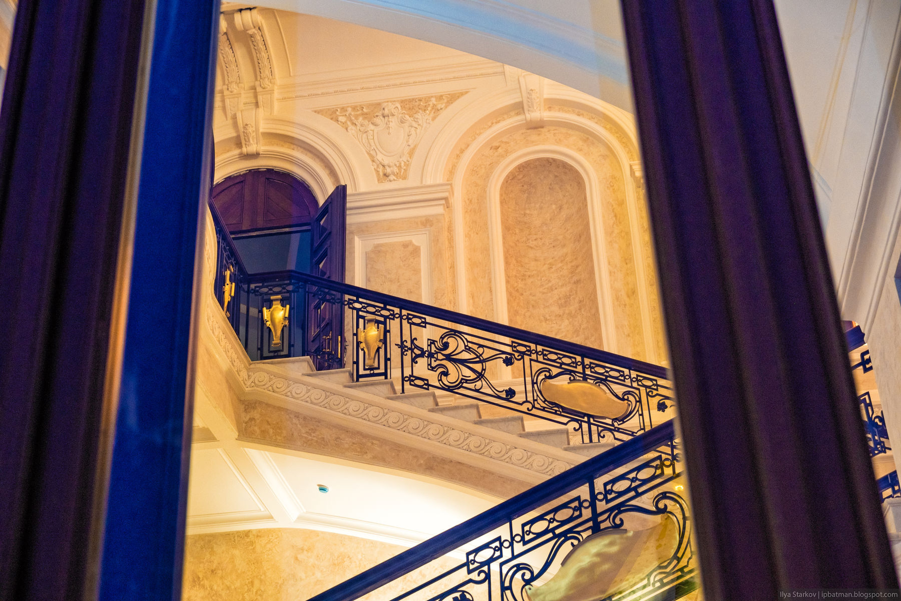 По вечерам, когда внутри горит свет, можно в окна разглядеть интерьеры