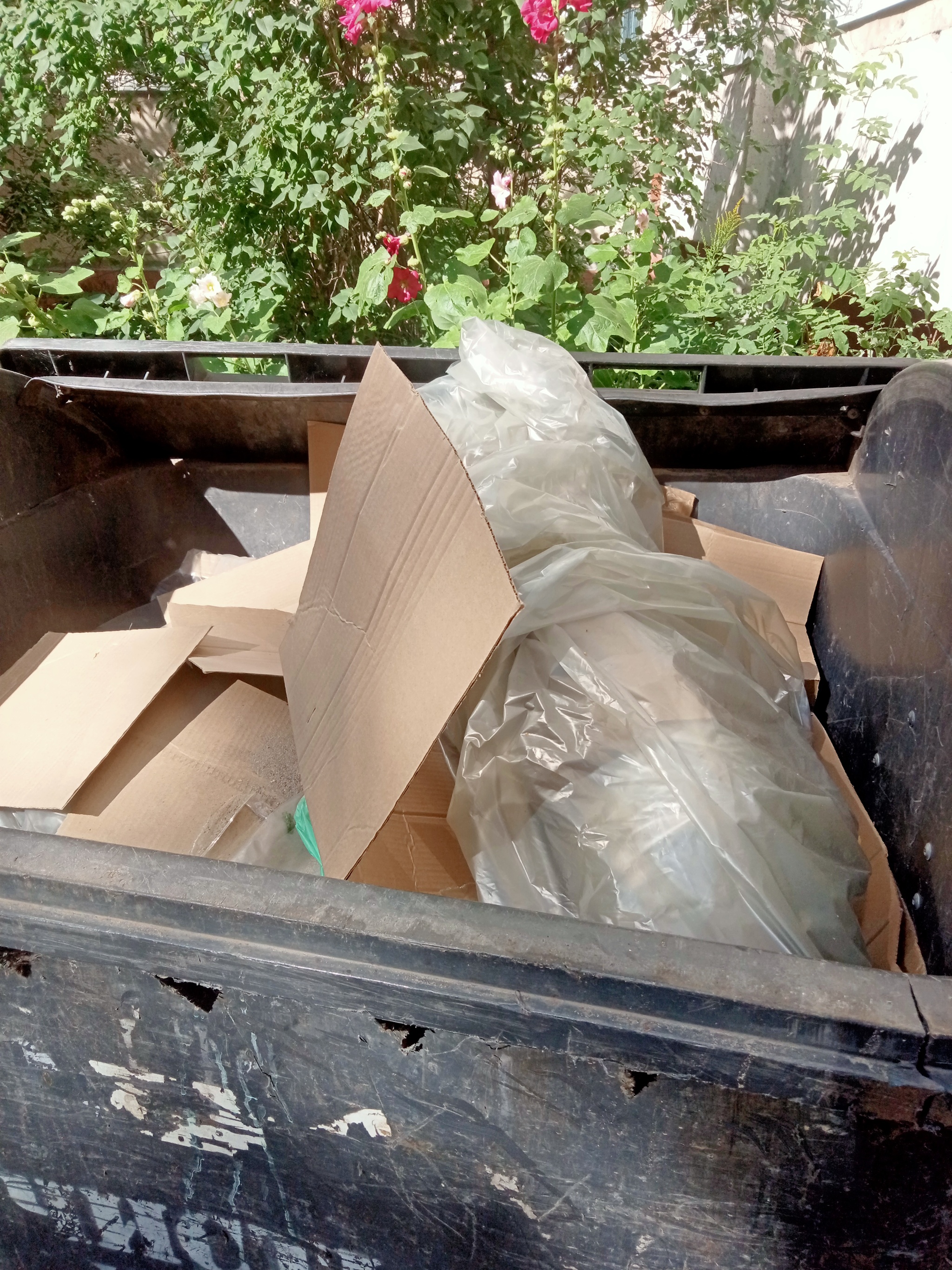 Для остальных поясню: это мусорный контейнер у моего дома. Сегодня утром был вывоз мусора. И какой-то пидор, увидев пустой контейнер подумал такой: