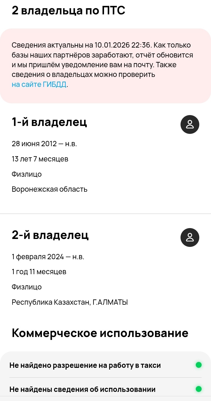 В отчете обнаружил интересную информацию😳.Оказалось.В 2024 г. появился еще один собственник автомобиля , но уже в Казахстане.
