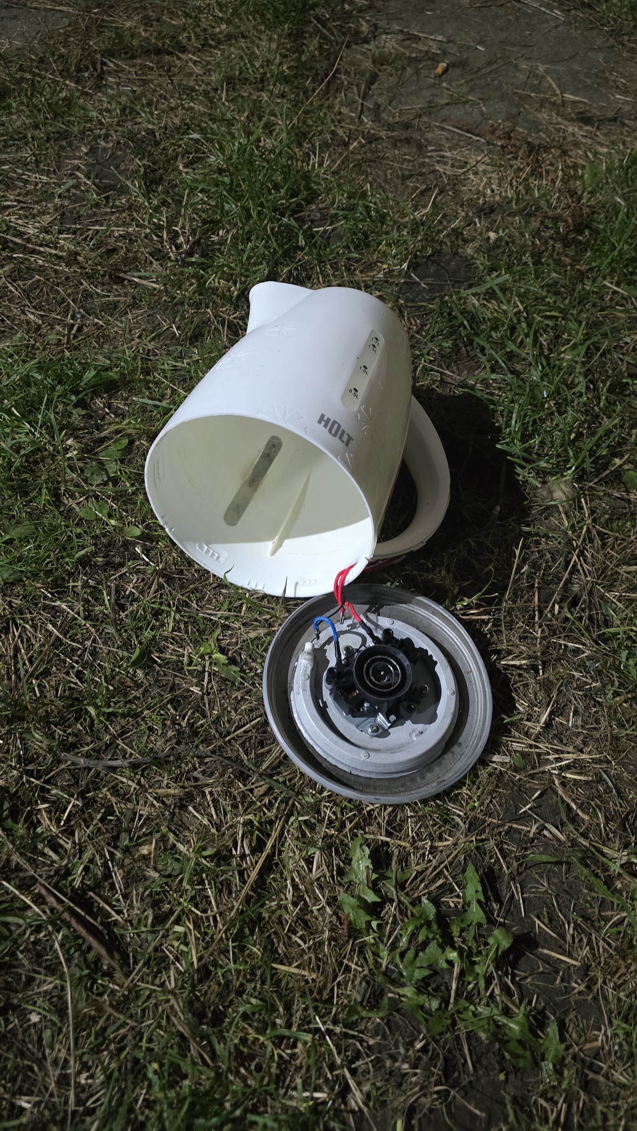 Отгонял машину в гараж, возвращаюсь домой, открываю дверь в дом и офигеваю, потому что в прихожей (дверь в кухню открыта) по пояс (с потолка начиная) пара. Понимаю, что на кухне заклинил чайник, бегу туда, вырываю его из подставки, а он уже подплавился по низу и начал протекать, и выбрасываю его через открытую дверь в дом. Свой дом, если что, когда вошёл, увидел эту печаль и мне уже не до закрывания двери было.