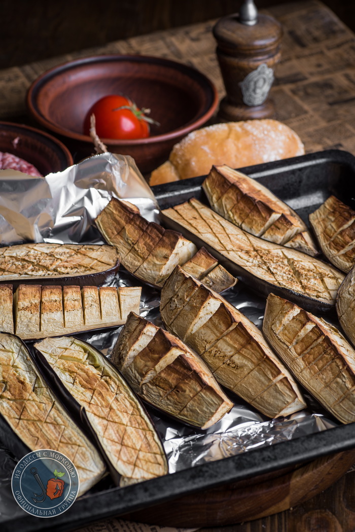 - 2 приличных баклажана или 3 поменьше.
