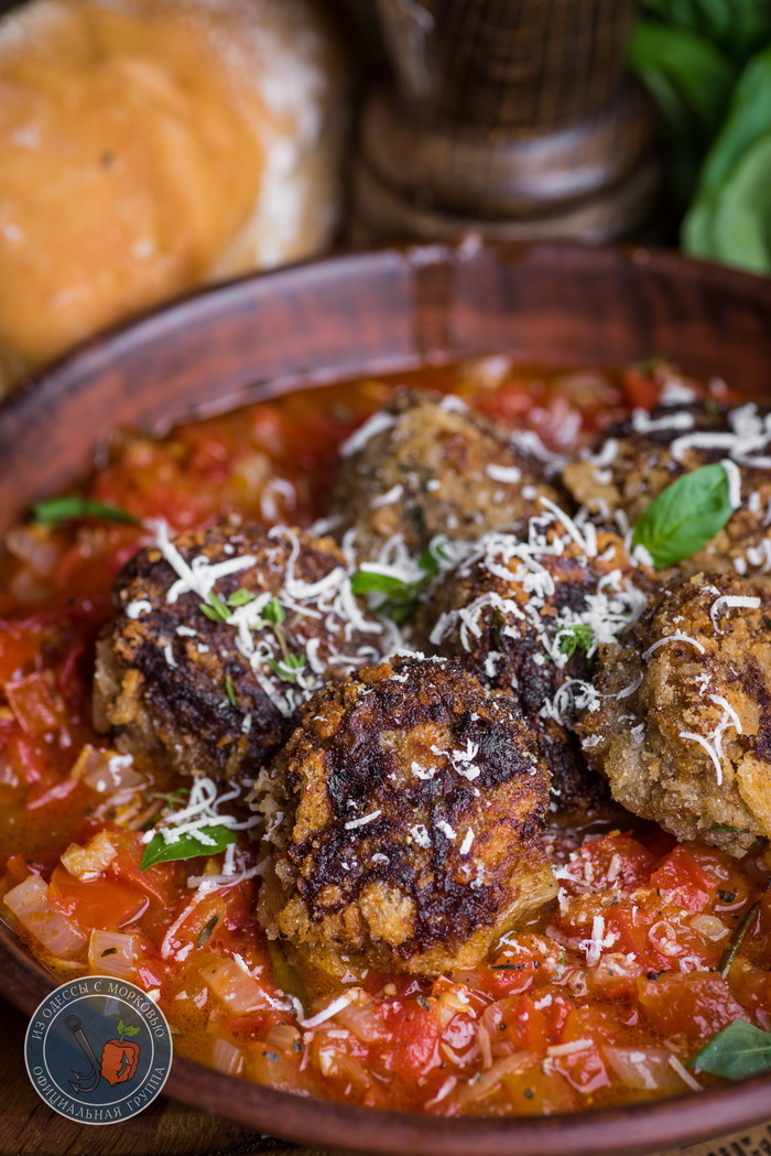 Выводы: что тут скажешь- весьма удачная штука получилась. Яркая и позитивная. Фрикадельки по текстуре относительно плотные, но мягче обычных котлет. Во вкусе различим вкус баклажана и это радует. Все это удачно сочетается с этим немного грубоватым, сладковатым соусом, пармезаном и базиликом. Короче, мне зашло. Можно еще немного поэкспериментировать с оттенками и брать на вооружение.