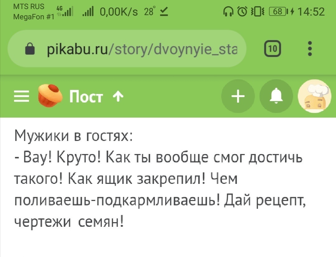 - Вау! Круто! Как ты вообще смог достичь такого! Как ящик закрепил! Чем поливаешь-подкармливаешь! Дай рецепт, чертежи, семян!