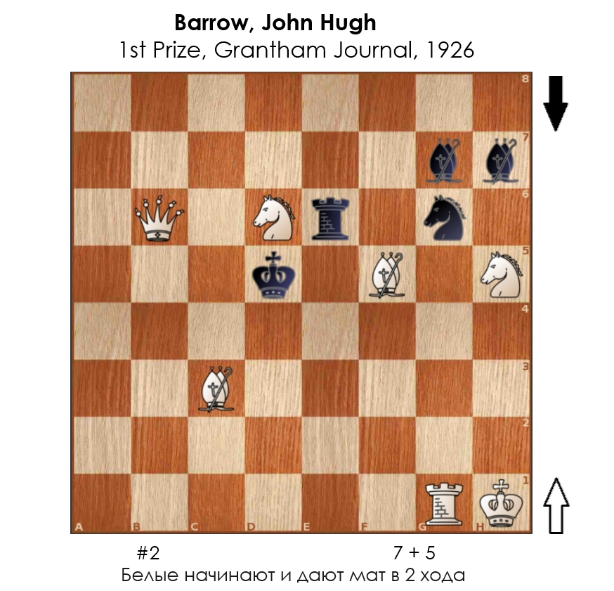 12 scootin Шахматы Двухходовочка #320 8 месяцев назад Двухходовая композиция британского проблемиста Джона Хью Барроу (John Hugh Barrow, 1890 или 1891 - 1943), победившая в конкурсе британского издания "Grantham Journal" в 1926 году. Шахматы Шахматные задачи Задача Головоломка Ещё 0