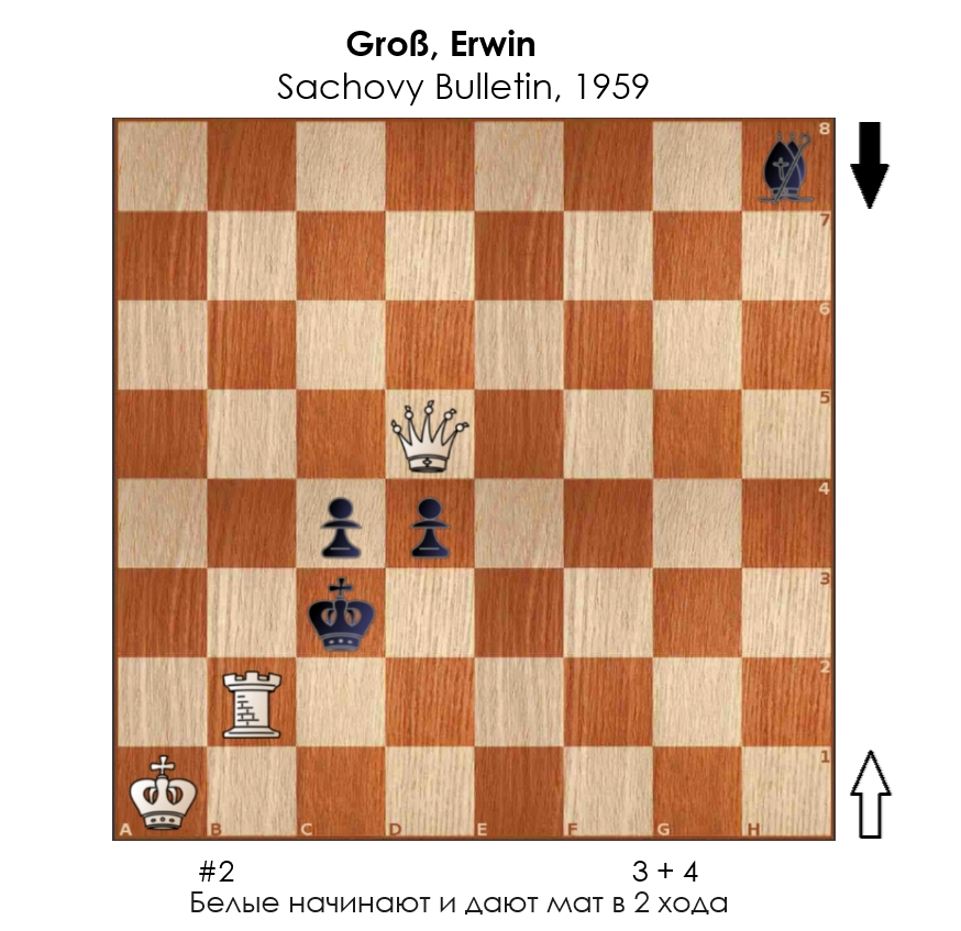 13 scootin Шахматы Двухходовочка #385 2 дня назад Несложная двухходовая миниатюра немецкого шахматного композитора и мастера ФИДЕ Эрвина Гросса (Erwin Groß, 1932 - 1993) из чехословацкого журнала "Šachový bulletin" за 1959 год. Шахматы Шахматные задачи Задача Головоломка Ещё 0