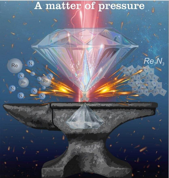 Поставив этот рекорд, исследователи тут же воспользовались достижением и изучили превращения нитридов рения под сверхвысоким давлением. Согласно предыдущим теоретическим расчетам, при сравнительно невысоком давлении в один миллион атмосфер в системе «рений — азот» существуют соединения Re3N, Re2N, ReN2 и довольно немыслимый в обычных обстоятельствах ReN10. При 7,3 миллионах атмосфер к ним добавляется ReN, а ReN10 дестабилизируется. Структура с составом Re7N3, существование которой предсказано теоретическими расчетами, поначалу является очень неустойчивой, но стабилизируется при давлении выше приблизительно 8,5 миллионов атмосфер. Анализ дифракционной картины показал, что при самом сильном сжатии образовалась именно она, что подтверждает правильность теоретических расчетов и достижение рекордного давления.