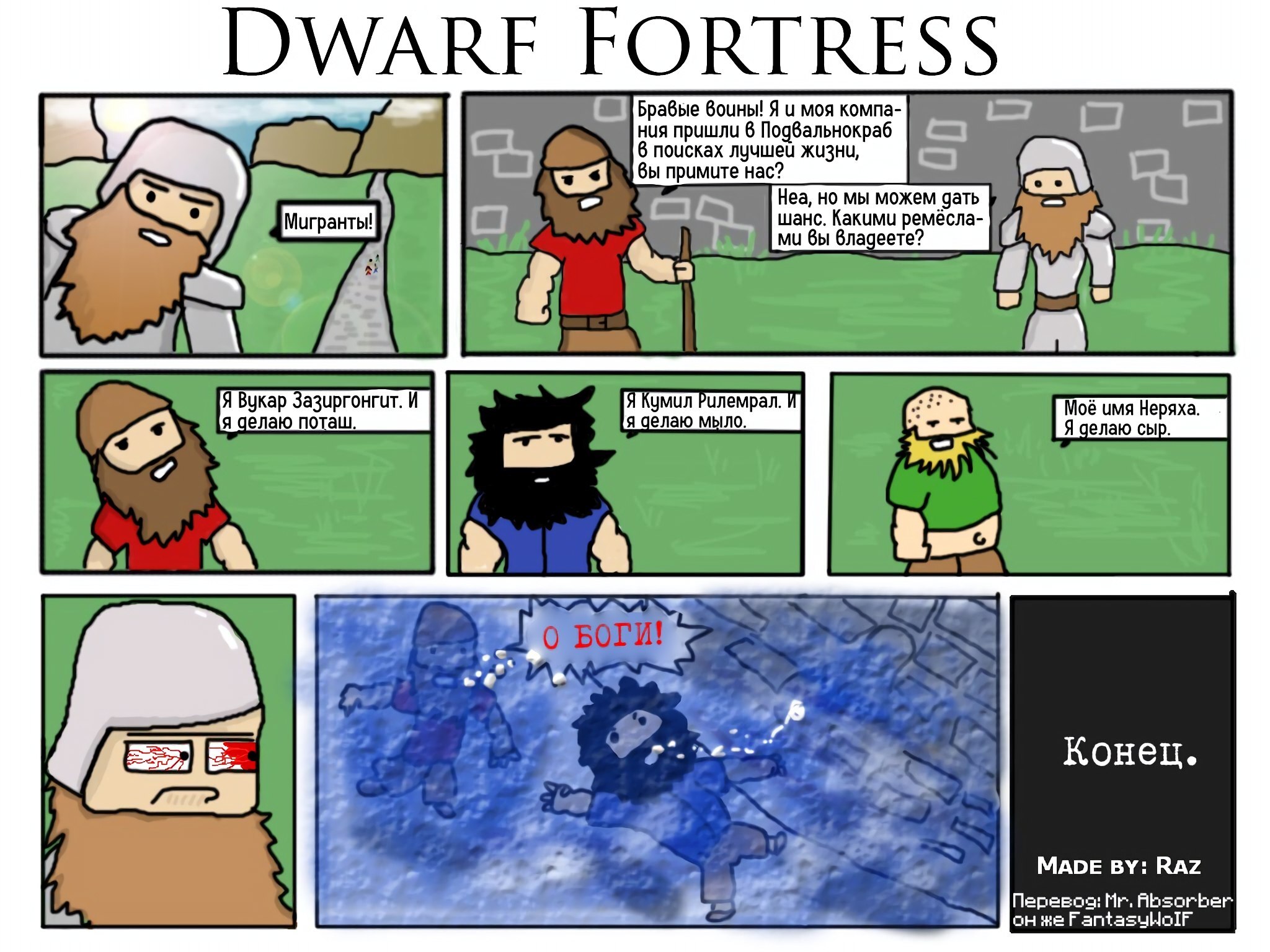 6 FantasyWolF Dwarf Fortress and migrants/Dwarf Fortress и мигранты 2 месяца назад ПРИМЕЧАНИЕ: я ни разу не видел перевод этого комикса. Взял из открытого источника и я не профессионал. Комиксы Перевел сам Dwarf Fortress 1 Ещё 0
