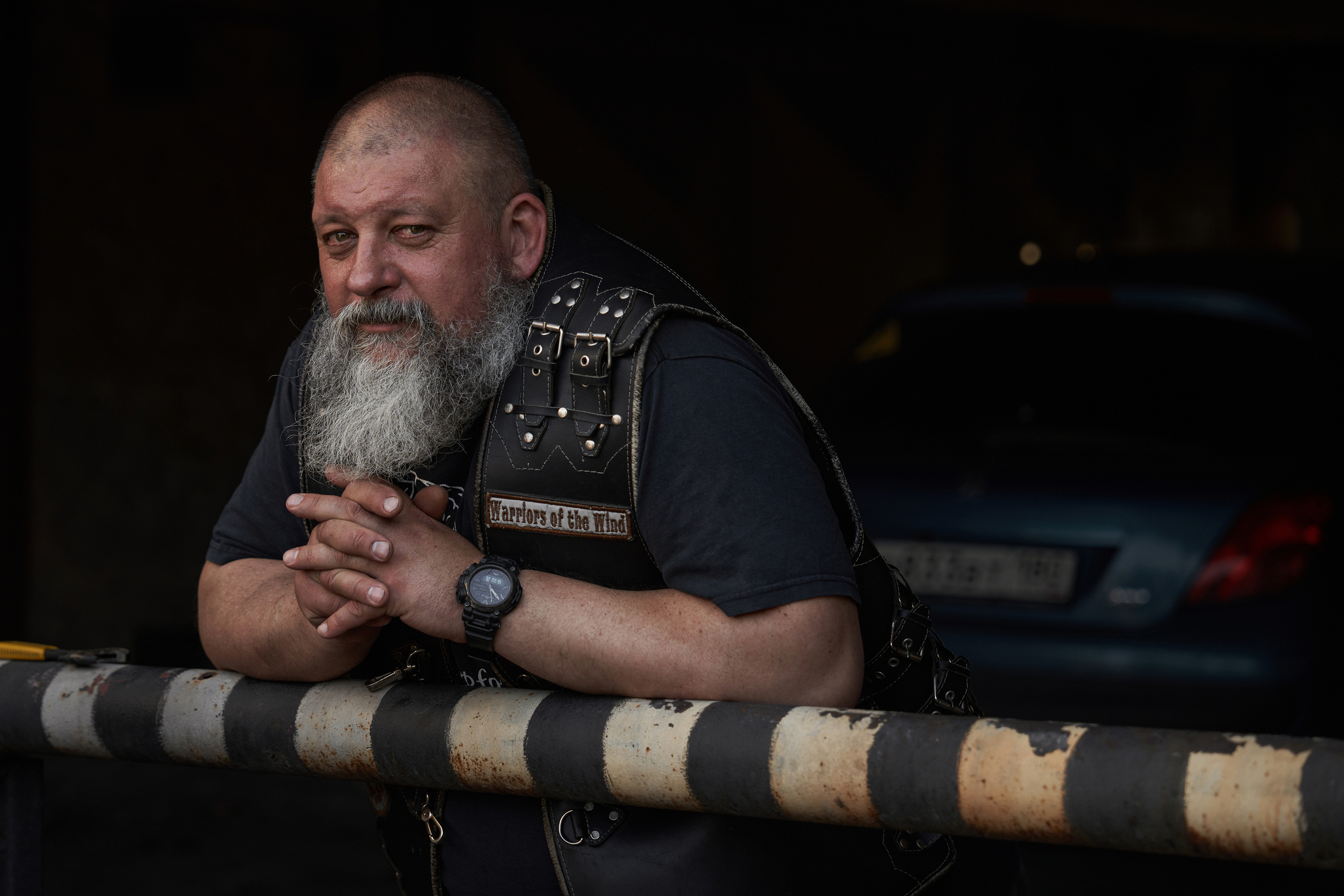 Байкер из донецкого клуба Warriors of the Wind MC. Фотография сделана в мае, на открытии мото-сезона 2025.