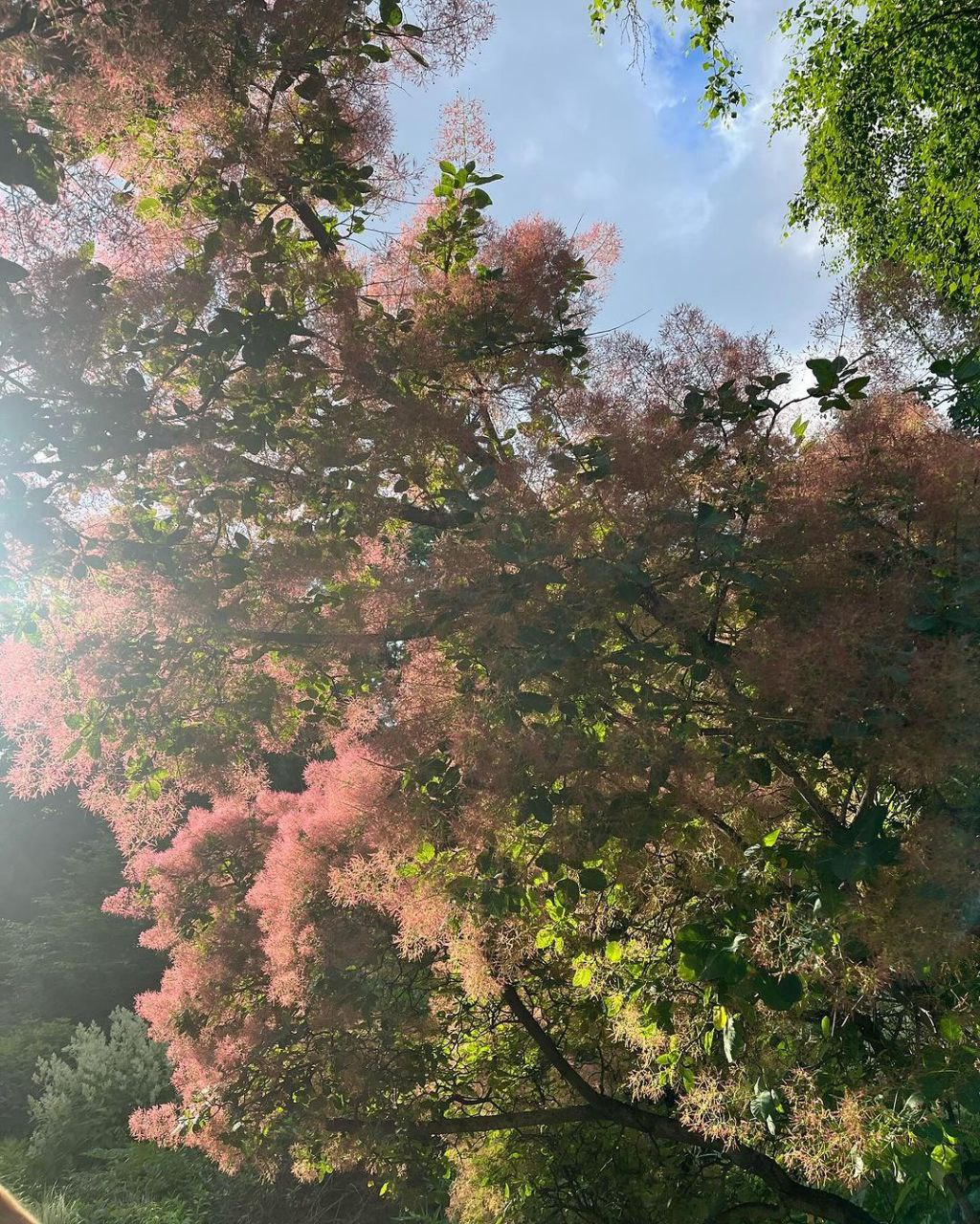 Пышный листопадный кустарник словно обволакивает розовый дым, что видно за несколько десятков метров.