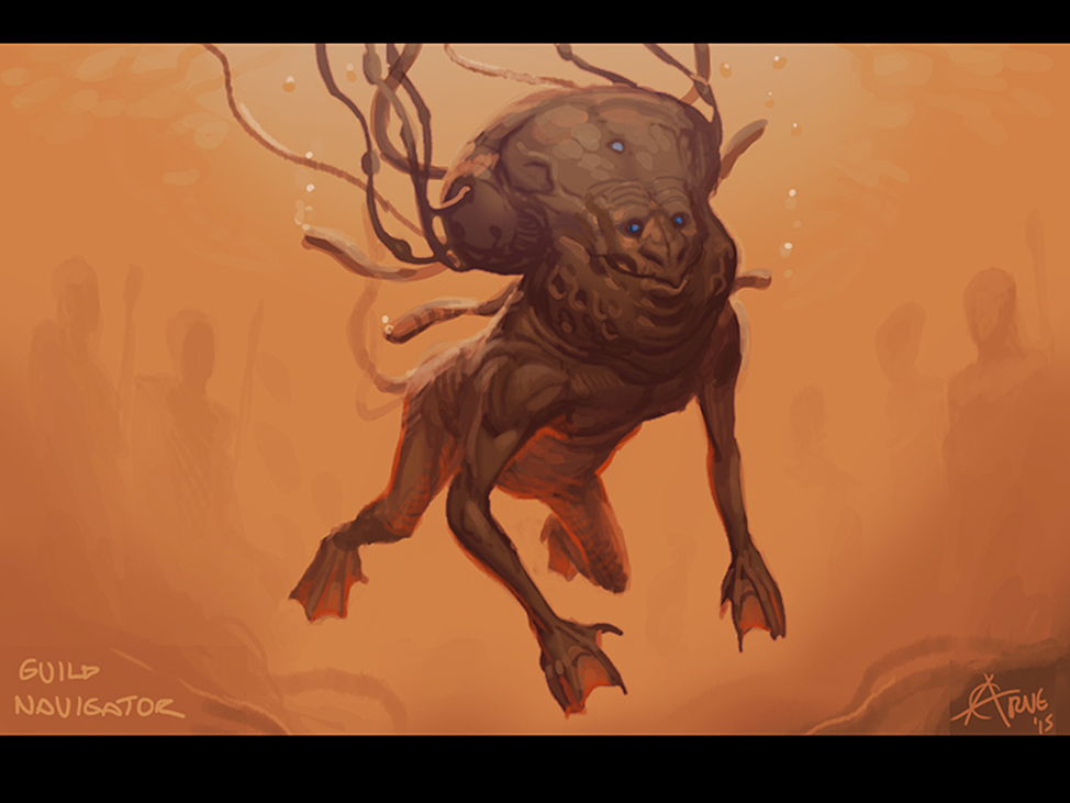 В романе от постоянного употребления спайса и нахождении в космосе в «свёрнутом пространстве» под эффектом Хольцмана, гильд-навигаторы мутируют и превращаются в нечто, способное жить только в специальном контейнере.