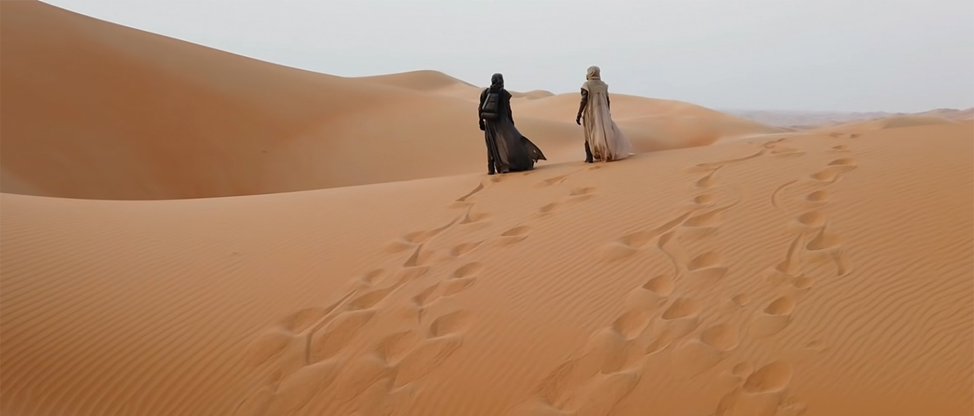 Во время первой поездки Атрейдесов в пустыню на поля спайса, мы видим во всей красе пейзажи Арракиса. При просмотре на большом экране, от длинных планов Дюны перехватывает дыхание.