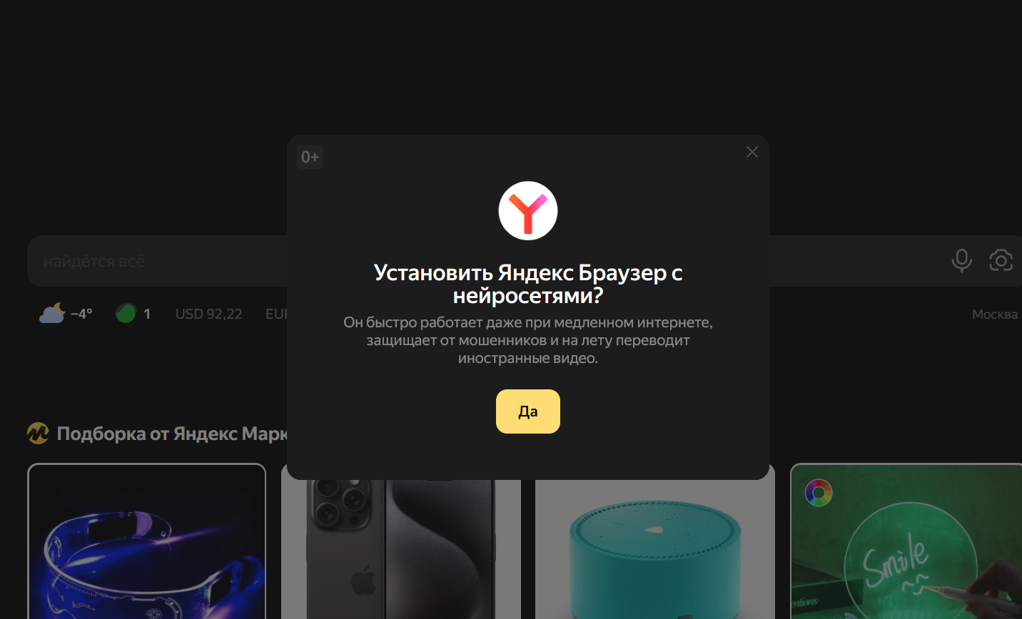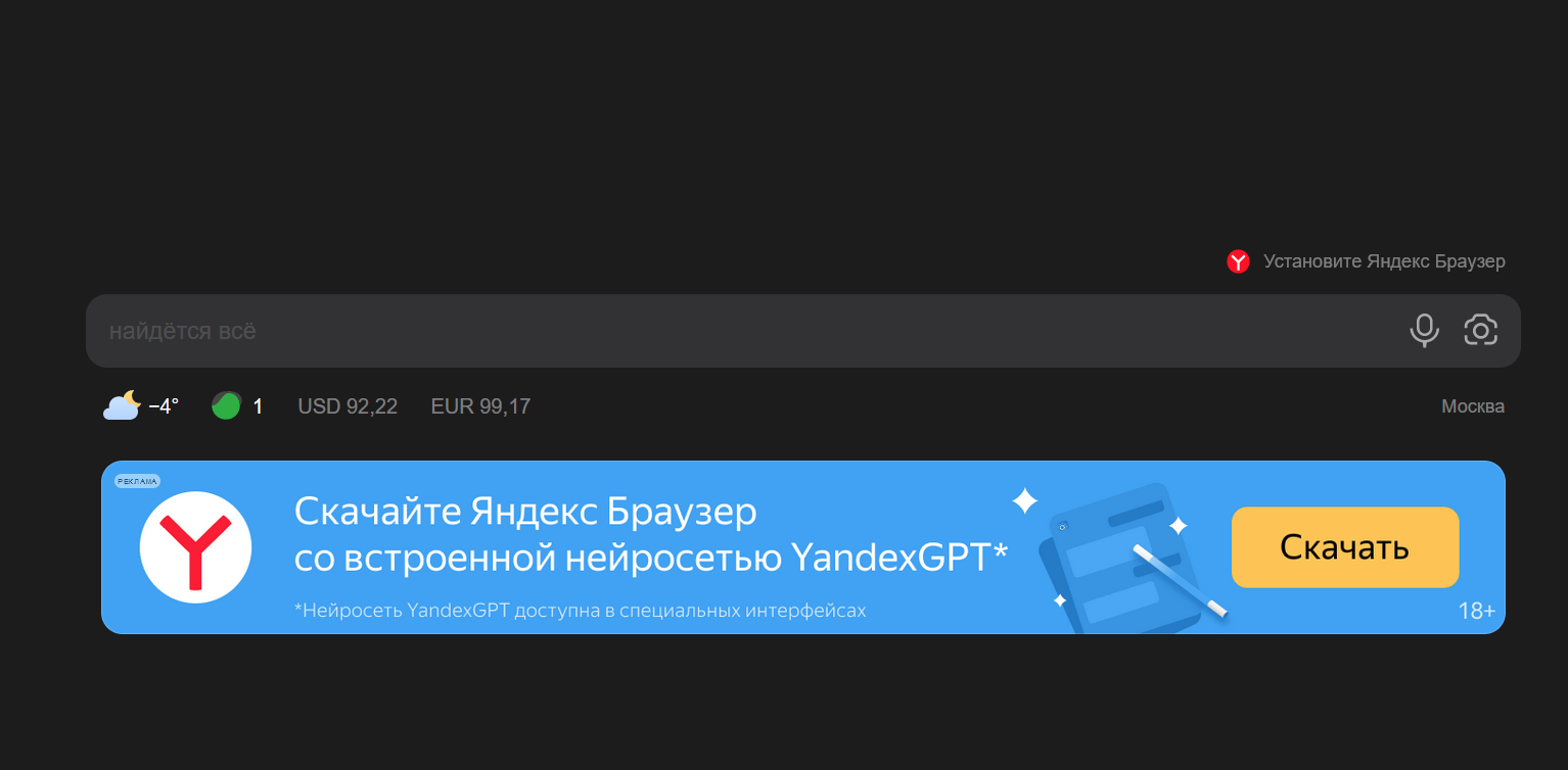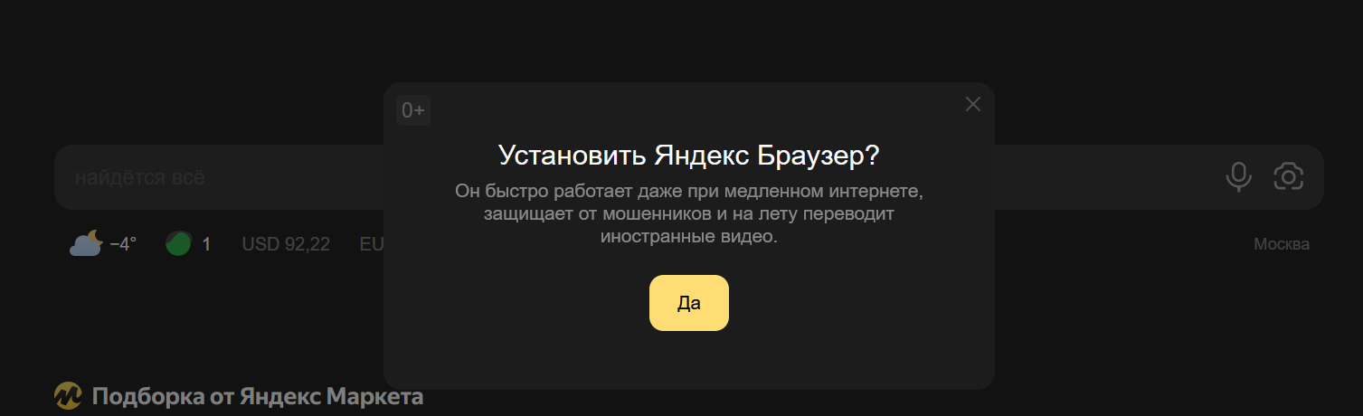 И тут же предложит установить Яндекс.Браузер