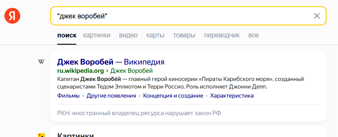... яндекс обиженно исправит на "Капитан Джек Воробей"