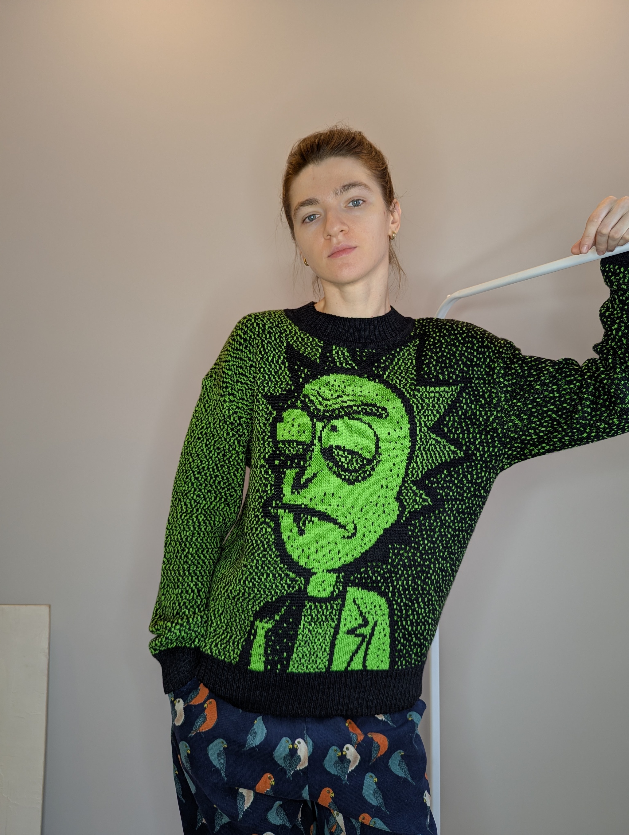Связала джемпер для поклонника сериала "Рик и Морти". Джемпер, который заставит Рика сказать: "Ну ладно, неплохо... для примитивного земного вязания".