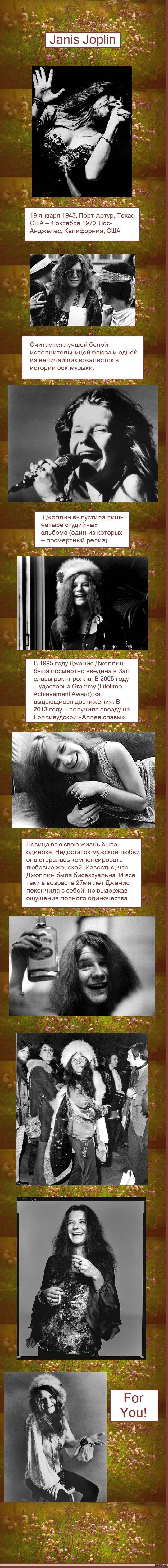 4 Fjodor 11 лет назад Дженис Лин Джоплин Учитивая прошлый опыт прилагаю текст ссылки на ее выступление- http://www.youtube.com/watch?v=bn5TNqjuHiU п.с. моя самая любимая версия этой песни. Дженис Джоплин Любимые Музыка Poк Длиннопост