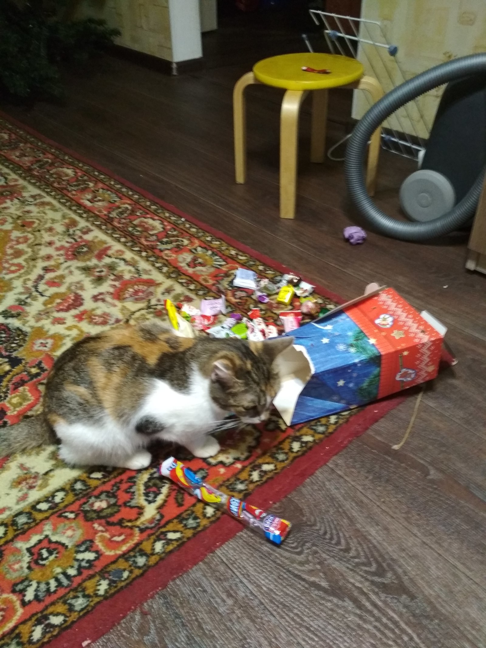 Как и все котики, он исследует всегда все коробки и пакеты.